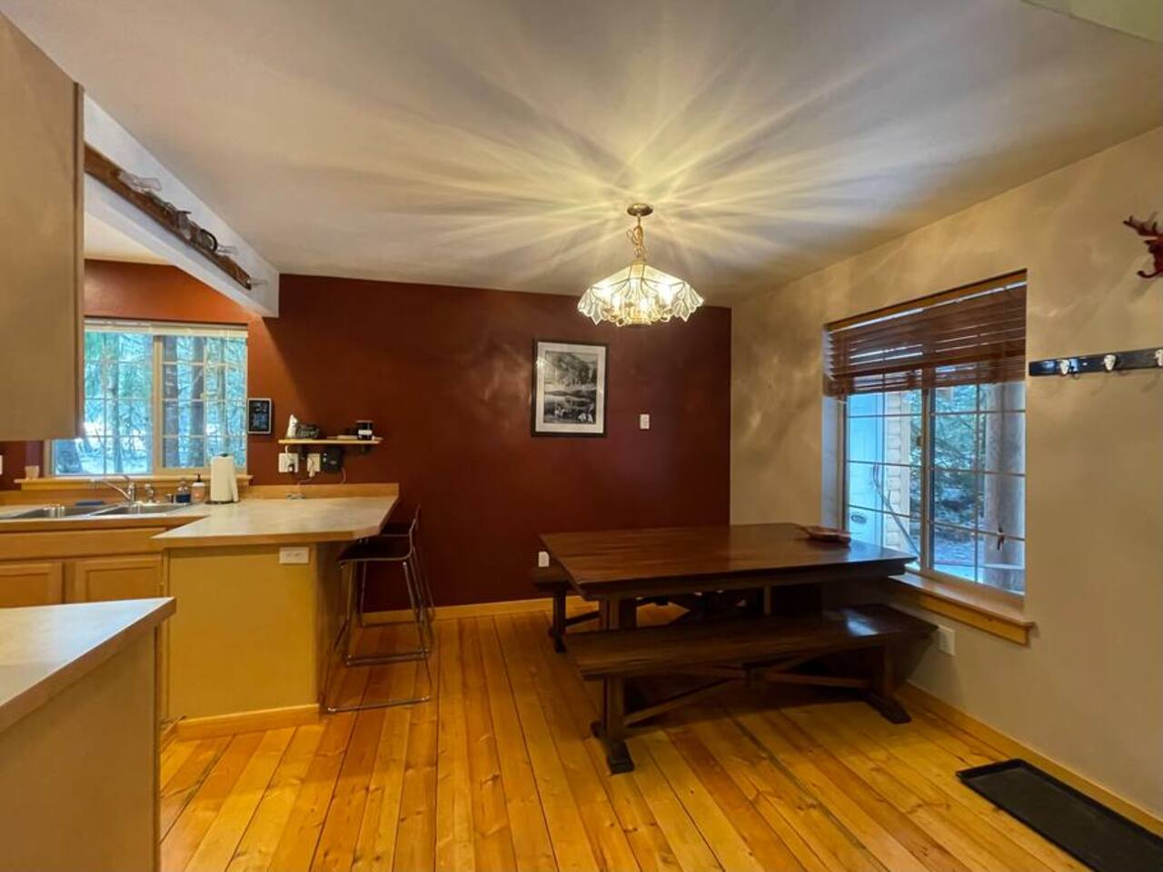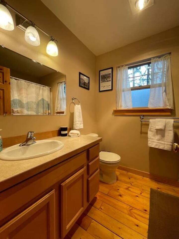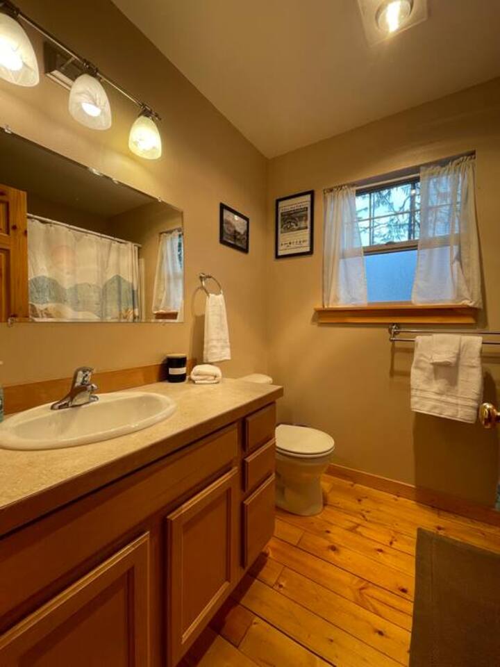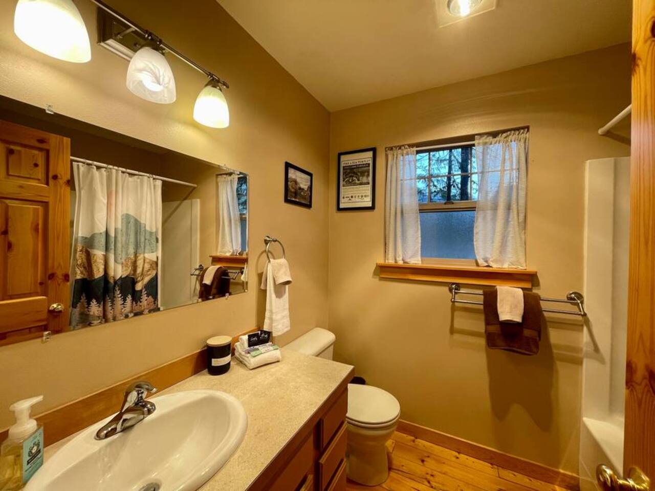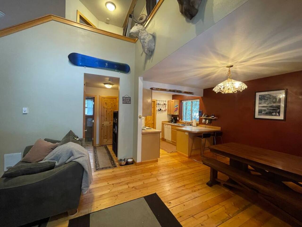 Hemlock Lodge sleeps up to 8 people; This home offers all the modern comforts but with a rustic camp feel. Featuring 3 bedrooms (including open sleeping loft), and 2 bathrooms (one shower/bath and one claw foot tub). The main floors open concept kitchen, dining & living areas keep the gathering intimate. The living room offers a cozy sofa, propane fireplace, and smart TV. The dining nook with bench and bar seating seats 8. The fully equipped kitchen overlooks the back yard and opens to the back porch outdoor dining area and private 6-person hot tub. Perfect for lounging in the fresh mountain air. Our lodge offers all the comforts including, plush beds and soft bedding, Games, Wi-Fi, Smart TV, Netflix, HBOGO and DVD player, dishwasher, washer/dryer, and mud/drying room for your gear Hemlock Lodge Sleeping configuration. • “Hemlock Room” Main floor Private Bedroom with Bunkbeds Queen and Twin (sleeps 3) • “Sherman Peak Room" Second-floor Private Bedroom with King Bed (sleeps 2) • “Blue Skye Sleeping Loft” Second-floor Bedroom with Queen Bed & Twin Bed (sleeps 3) The grounds- Small quaint lot with sunny open areas and lush shaded areas. With a variation of new trees and mature trees. Seasonal outside fire pit, outside dining area and 110-volt hot tub.