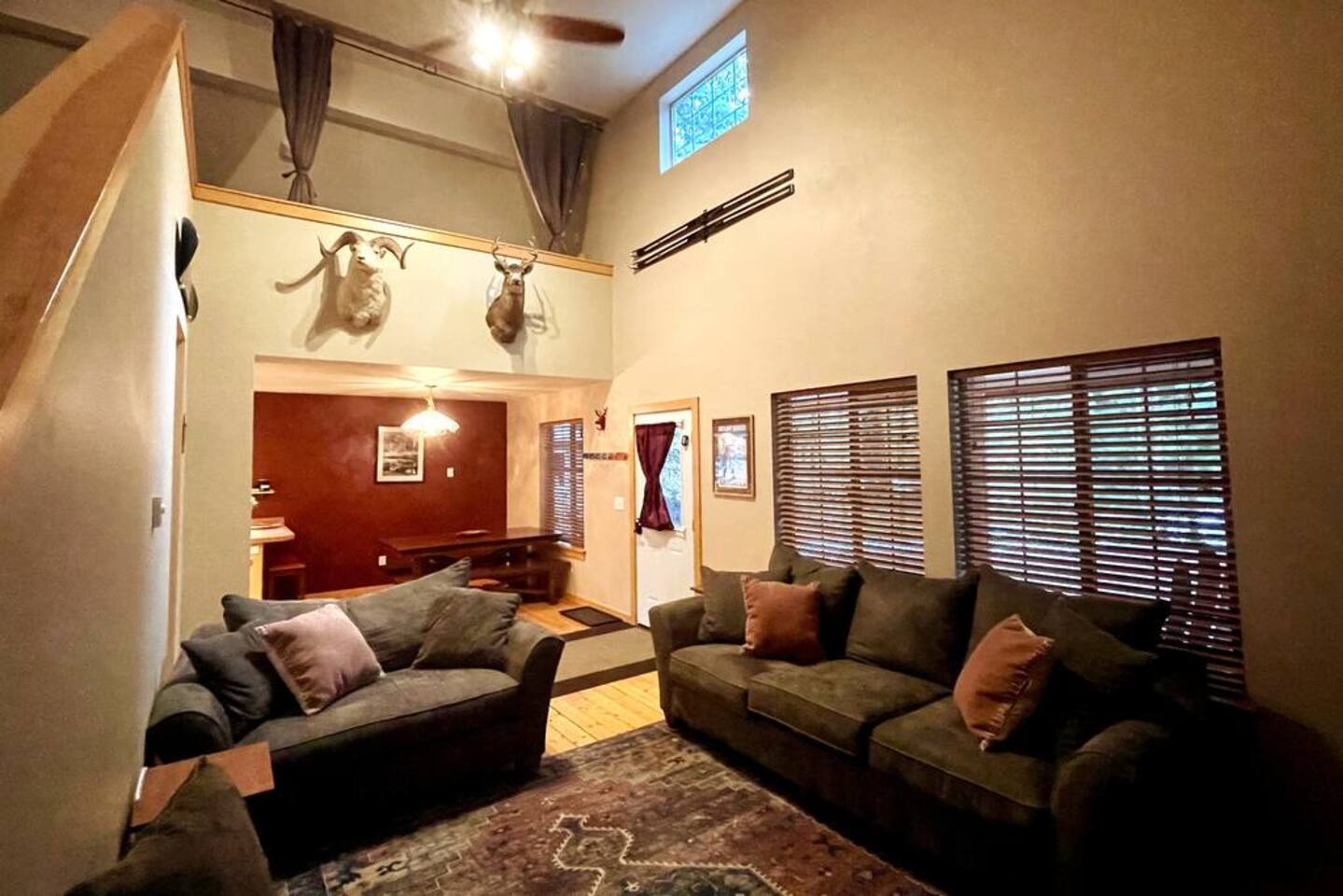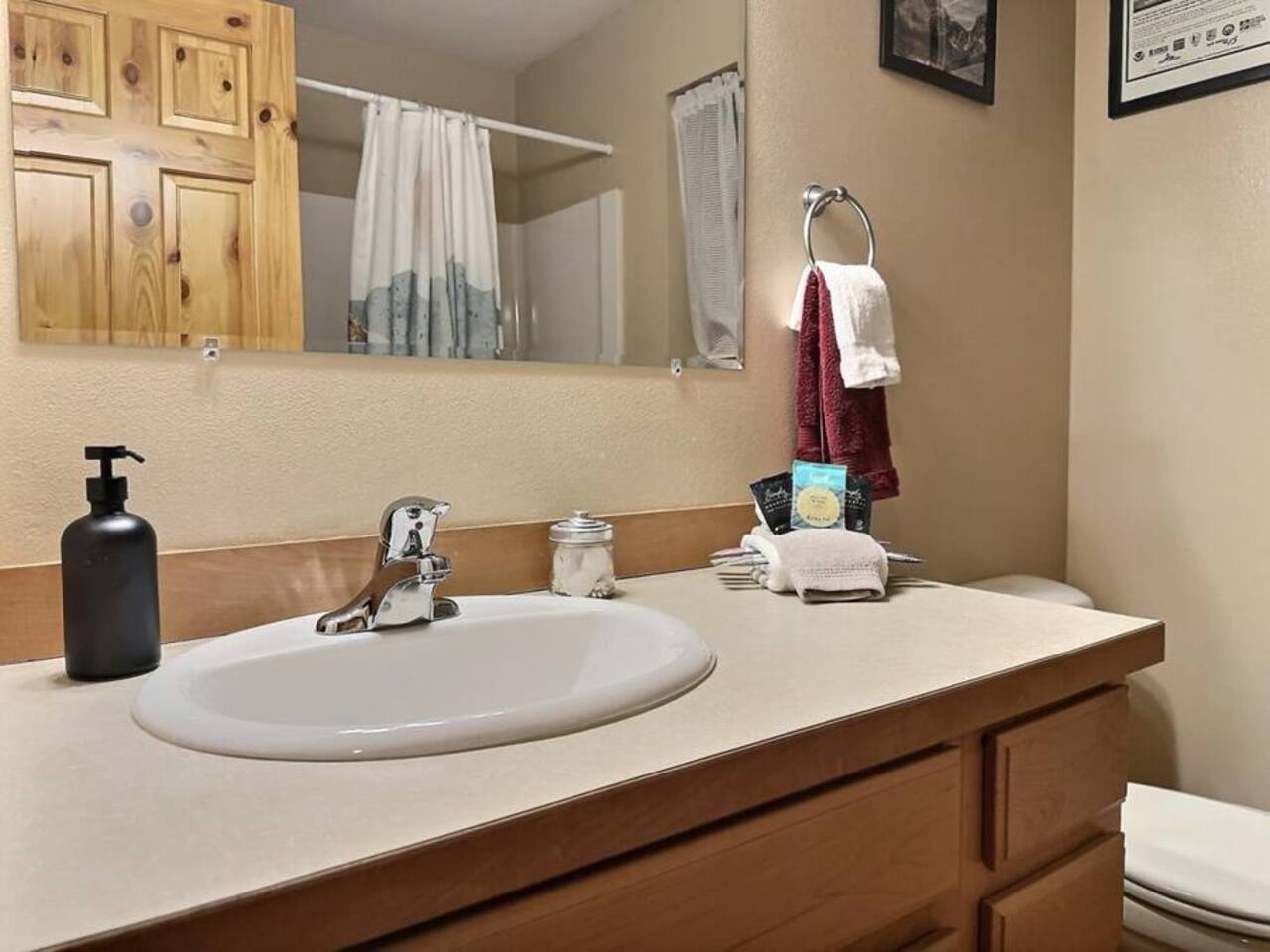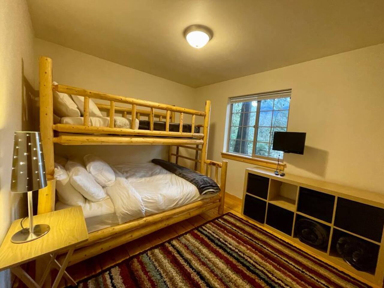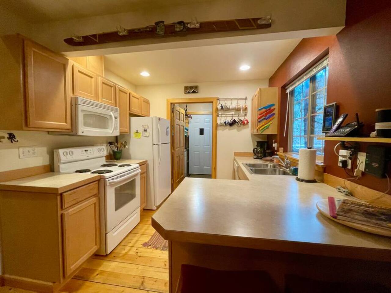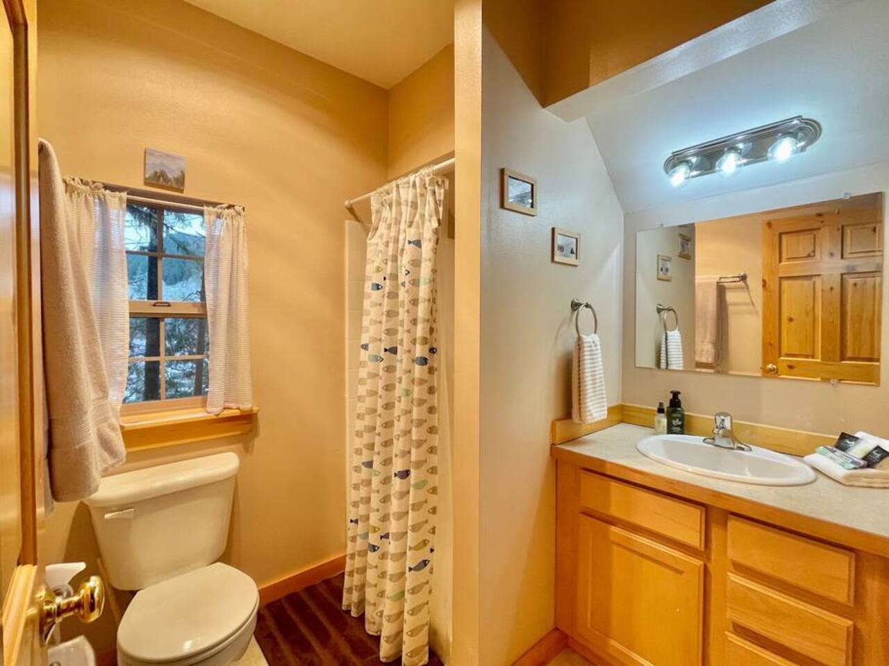 Hemlock Lodge sleeps up to 8 people; This home offers all the modern comforts but with a rustic camp feel. Featuring 3 bedrooms (including open sleeping loft), and 2 bathrooms (one shower/bath and one claw foot tub). The main floors open concept kitchen, dining & living areas keep the gathering intimate. The living room offers a cozy sofa, propane fireplace, and smart TV. The dining nook with bench and bar seating seats 8. The fully equipped kitchen overlooks the back yard and opens to the back porch outdoor dining area and private 6-person hot tub. Perfect for lounging in the fresh mountain air. Our lodge offers all the comforts including, plush beds and soft bedding, Games, Wi-Fi, Smart TV, Netflix, HBOGO and DVD player, dishwasher, washer/dryer, and mud/drying room for your gear Hemlock Lodge Sleeping configuration. • “Hemlock Room” Main floor Private Bedroom with Bunkbeds Queen and Twin (sleeps 3) • “Sherman Peak Room" Second-floor Private Bedroom with King Bed (sleeps 2) • “Blue Skye Sleeping Loft” Second-floor Bedroom with Queen Bed & Twin Bed (sleeps 3) The grounds- Small quaint lot with sunny open areas and lush shaded areas. With a variation of new trees and mature trees. Seasonal outside fire pit, outside dining area and 110-volt hot tub.