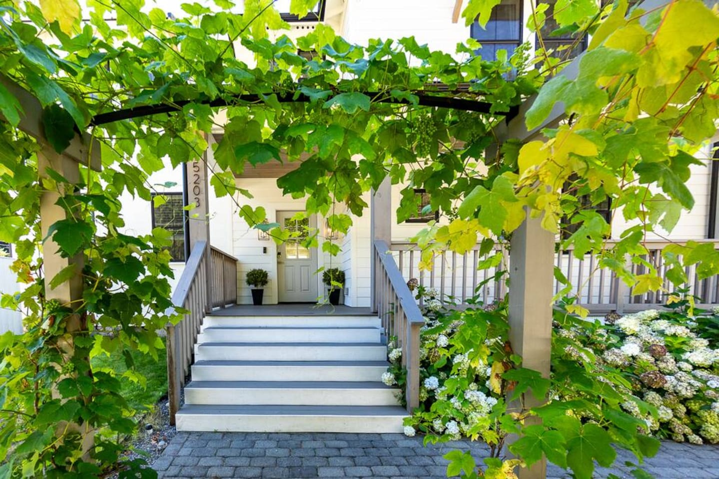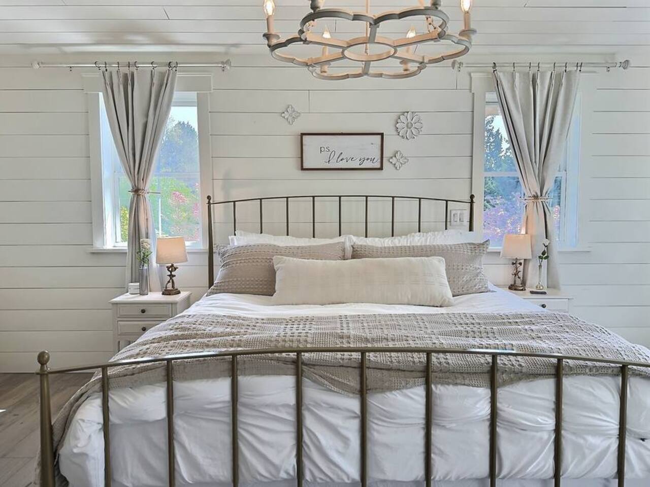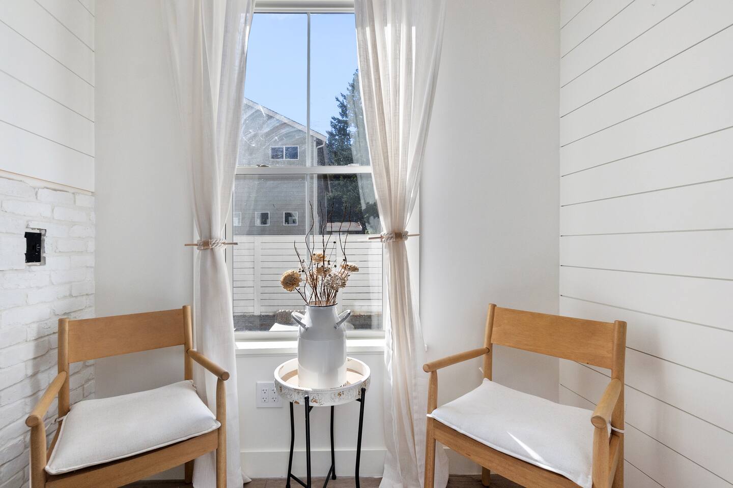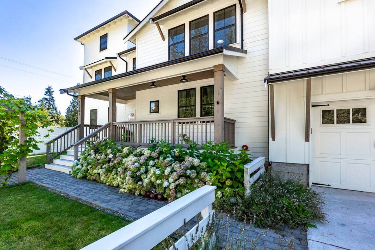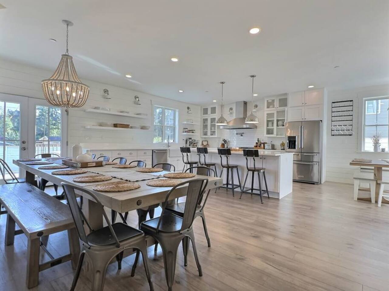 Welcome to Serenity at Shoreline, your invitation to gather, restore, and experience a slower rhythm—surrounded by beauty, comfort, and just the right touch of grace. Tucked in a quiet Shoreline neighborhood just north of Seattle, this modern white farmhouse was thoughtfully designed to hold both joy and stillness in equal measure. Driftwood tones, vintage touches, and sunlit spaces come together to create a stay that feels warm, grounded, and unforgettable. From shared meals around the oversized dining table to slow mornings with coffee in the garden, every inch of this home encourages you to soften, settle in, and stay awhile. Just blocks from the Shoreline light rail station, guests enjoy effortless access to both Seattle and Lynnwood, as well as quick connections to I-5 for convenient regional travel. At the heart of the home, you’ll find an open-concept living space with plush seating and a double-sided fireplace, connecting seamlessly to the chef’s kitchen. Outfitted with a six-burner range, island seating, and all the small appliances you might need, the kitchen is perfectly equipped for slow breakfasts, shared dinners, and everything in between. Just around the corner, a cozy theater room invites you to unwind with a favorite film or settle in for a movie night after a day of adventure. All common living spaces are located on the main floor—with the exception of the laundry room, which is tucked away for convenience. The home features five thoughtfully designed bedrooms and a third-floor crow’s nest den—each with its own character and charm. Whether you're hosting a large gathering, retreating with a smaller group, or simply seeking a quiet escape, there’s space to rest and reconnect in every corner. ________________________________________ Where You’ll Sleep 🌿 The Wisteria Suite — Main Floor, King Bed + En-Suite Bath This restful suite feels like a deep exhale—layered in muted light, gentle textures, and a quiet kind of elegance. Located on the main floor, it features a plush king bed, a private en-suite bathroom, and calming views of the cascading wisteria vines just beyond its windows. 🌲 The Driftwood Suite — Upper Floor, King Bed + En-Suite Bath A sanctuary in the sky. With vaulted shiplap ceilings and sun-drenched interiors, this upstairs suite offers both space and stillness. The five-piece en-suite bath features a decadent pedestal soaking tub, and a large TV makes it the perfect space for unwinding in comfort. 🕊 The Shoreline Room — Upper Floor, Queen Bed + Shared Bath Tranquil, simple, and serene, this queen bedroom is located near the shared hallway bath. Designed with early morning light and soft-toned stillness in mind, it’s a peaceful escape tucked just across from the Driftwood Suite. 🌙 The Sea Star Bunkroom — Upper Floor, 2 Twin-Over-Twin Bunks + Shared Bath Playful and cozy, this light-hearted space features two twin-over-twin bunk beds and plenty of charm. It’s ideal for cousins, siblings, or anyone young at heart. 🌸 The Hydrangea Room — Upper Floor, Queen Bed + En-Suite Bath Tucked toward the back of the home, this light-filled queen suite offers privacy and calm. It includes a private en-suite bathroom and a soft, muted palette. A TV makes it a perfect place to retreat and unwind. 🪶 The Lookout — Third Floor, Vaulted Den Perched at the very top of the house, this crow’s nest den is wrapped in treetop views. With vaulted ceilings and natural light, it’s perfect for journaling, quiet work, or creative solitude—your personal perch above it all. ________________________________________ Step outside into a fully fenced backyard where nature wraps around you like a gentle whisper. Twinkling lights twist above the outdoor dining space, hydrangeas bloom in blues and blush, and a soft green lawn invites you to slip off your shoes and feel the earth beneath your feet The home is equipped with everything you need for a seamless and comfortable stay: high-speed Wi-Fi, smart TVs, a full laundry room, luxurious linens, plush towels, and a curated starter supply of soaps and household essentials. Every space—every corner—has been arranged with care, wrapped in warmth, and built for ease. Reminiscent of classic townhomes and side-by-side estates, Serenity at Shoreline shares one wall with a neighboring private residence. Each home is fully self-contained, with its own private entrance, living quarters, yard, and parking—ensuring your stay feels peaceful, independent, and uninterrupted “Come as you are. Leave a little lighter.” This isn’t just a place to stay—it’s a gentle invitation to slow down, breathe deeper, and find a softer way of being, right here in the quiet heart of Shoreline.