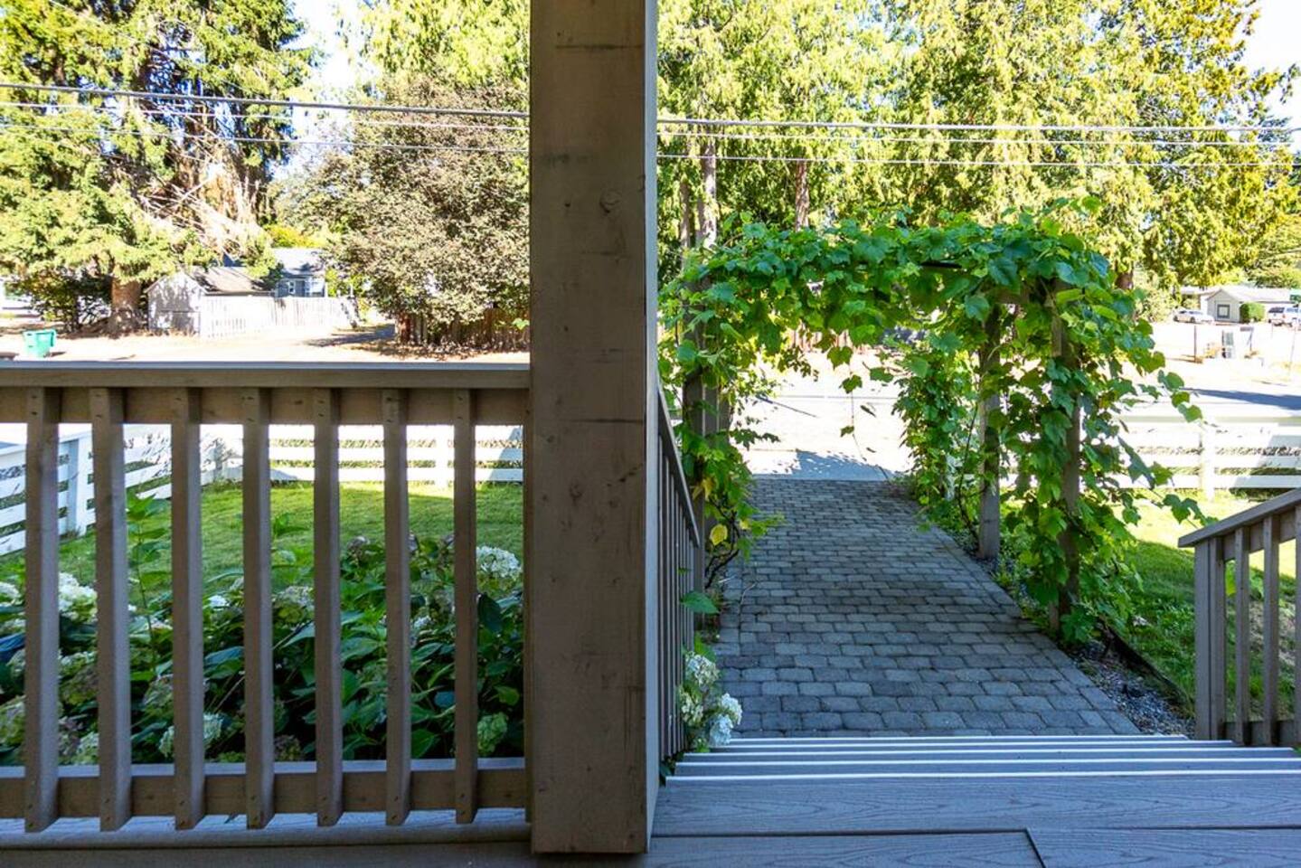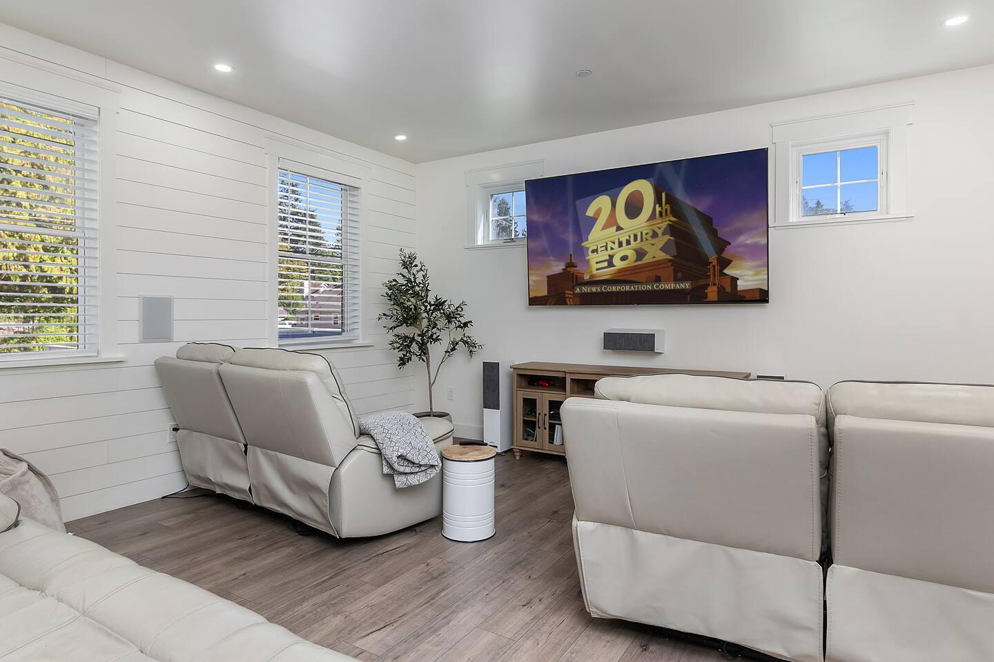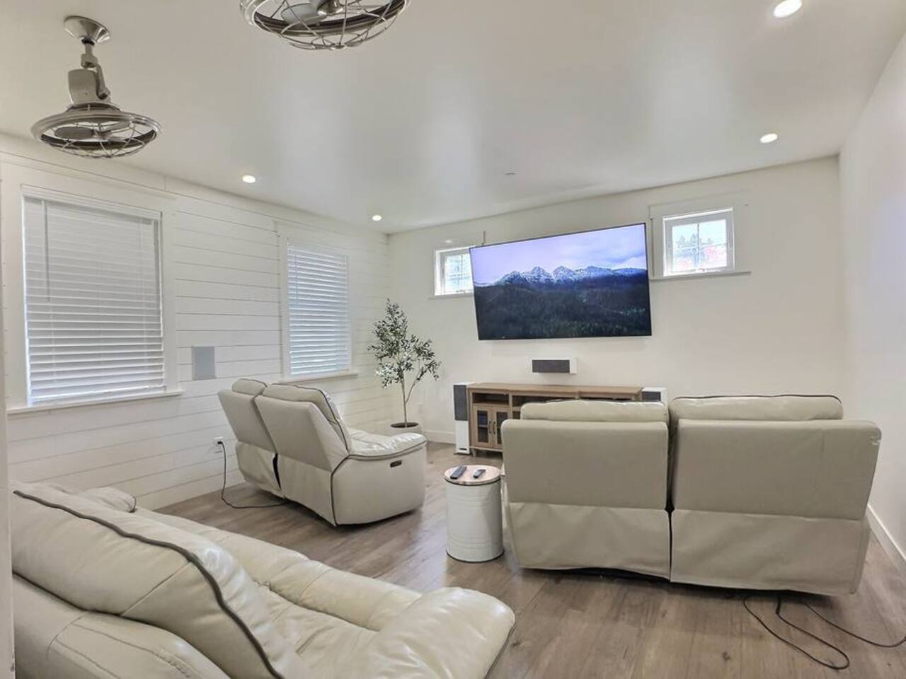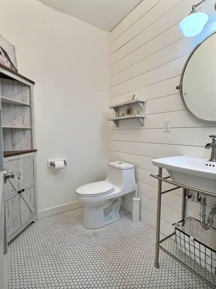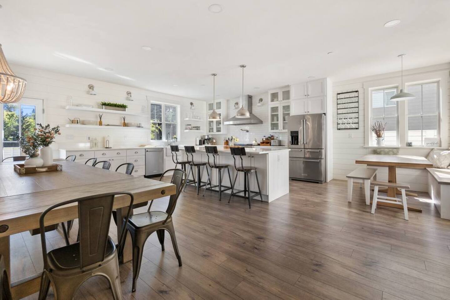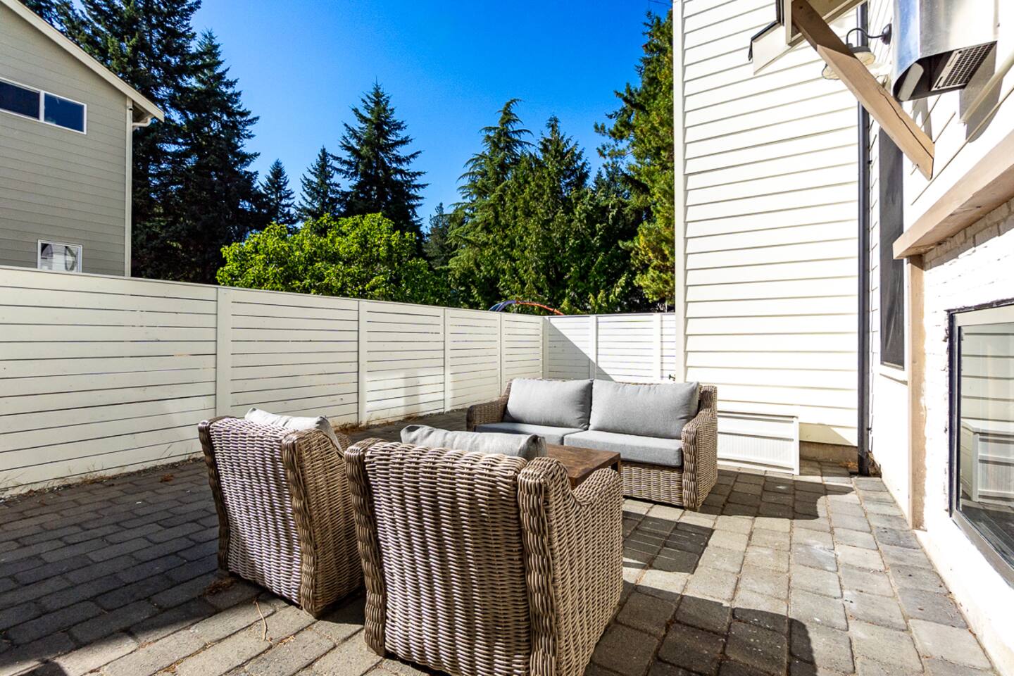 Welcome to Serenity at Shoreline, your invitation to gather, restore, and experience a slower rhythm—surrounded by beauty, comfort, and just the right touch of grace. Tucked in a quiet Shoreline neighborhood just north of Seattle, this modern white farmhouse was thoughtfully designed to hold both joy and stillness in equal measure. Driftwood tones, vintage touches, and sunlit spaces come together to create a stay that feels warm, grounded, and unforgettable. From shared meals around the oversized dining table to slow mornings with coffee in the garden, every inch of this home encourages you to soften, settle in, and stay awhile. Just blocks from the Shoreline light rail station, guests enjoy effortless access to both Seattle and Lynnwood, as well as quick connections to I-5 for convenient regional travel. At the heart of the home, you’ll find an open-concept living space with plush seating and a double-sided fireplace, connecting seamlessly to the chef’s kitchen. Outfitted with a six-burner range, island seating, and all the small appliances you might need, the kitchen is perfectly equipped for slow breakfasts, shared dinners, and everything in between. Just around the corner, a cozy theater room invites you to unwind with a favorite film or settle in for a movie night after a day of adventure. All common living spaces are located on the main floor—with the exception of the laundry room, which is tucked away for convenience. The home features five thoughtfully designed bedrooms and a third-floor crow’s nest den—each with its own character and charm. Whether you're hosting a large gathering, retreating with a smaller group, or simply seeking a quiet escape, there’s space to rest and reconnect in every corner. ________________________________________ Where You’ll Sleep 🌿 The Wisteria Suite — Main Floor, King Bed + En-Suite Bath This restful suite feels like a deep exhale—layered in muted light, gentle textures, and a quiet kind of elegance. Located on the main floor, it features a plush king bed, a private en-suite bathroom, and calming views of the cascading wisteria vines just beyond its windows. 🌲 The Driftwood Suite — Upper Floor, King Bed + En-Suite Bath A sanctuary in the sky. With vaulted shiplap ceilings and sun-drenched interiors, this upstairs suite offers both space and stillness. The five-piece en-suite bath features a decadent pedestal soaking tub, and a large TV makes it the perfect space for unwinding in comfort. 🕊 The Shoreline Room — Upper Floor, Queen Bed + Shared Bath Tranquil, simple, and serene, this queen bedroom is located near the shared hallway bath. Designed with early morning light and soft-toned stillness in mind, it’s a peaceful escape tucked just across from the Driftwood Suite. 🌙 The Sea Star Bunkroom — Upper Floor, 2 Twin-Over-Twin Bunks + Shared Bath Playful and cozy, this light-hearted space features two twin-over-twin bunk beds and plenty of charm. It’s ideal for cousins, siblings, or anyone young at heart. 🌸 The Hydrangea Room — Upper Floor, Queen Bed + En-Suite Bath Tucked toward the back of the home, this light-filled queen suite offers privacy and calm. It includes a private en-suite bathroom and a soft, muted palette. A TV makes it a perfect place to retreat and unwind. 🪶 The Lookout — Third Floor, Vaulted Den Perched at the very top of the house, this crow’s nest den is wrapped in treetop views. With vaulted ceilings and natural light, it’s perfect for journaling, quiet work, or creative solitude—your personal perch above it all. ________________________________________ Step outside into a fully fenced backyard where nature wraps around you like a gentle whisper. Twinkling lights twist above the outdoor dining space, hydrangeas bloom in blues and blush, and a soft green lawn invites you to slip off your shoes and feel the earth beneath your feet The home is equipped with everything you need for a seamless and comfortable stay: high-speed Wi-Fi, smart TVs, a full laundry room, luxurious linens, plush towels, and a curated starter supply of soaps and household essentials. Every space—every corner—has been arranged with care, wrapped in warmth, and built for ease. Reminiscent of classic townhomes and side-by-side estates, Serenity at Shoreline shares one wall with a neighboring private residence. Each home is fully self-contained, with its own private entrance, living quarters, yard, and parking—ensuring your stay feels peaceful, independent, and uninterrupted “Come as you are. Leave a little lighter.” This isn’t just a place to stay—it’s a gentle invitation to slow down, breathe deeper, and find a softer way of being, right here in the quiet heart of Shoreline.