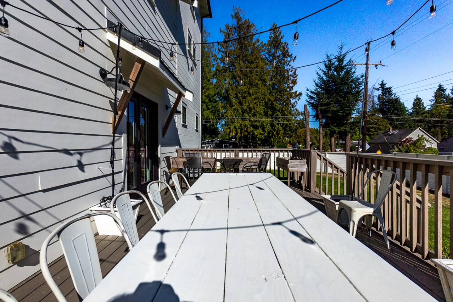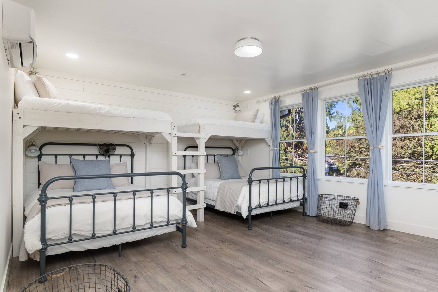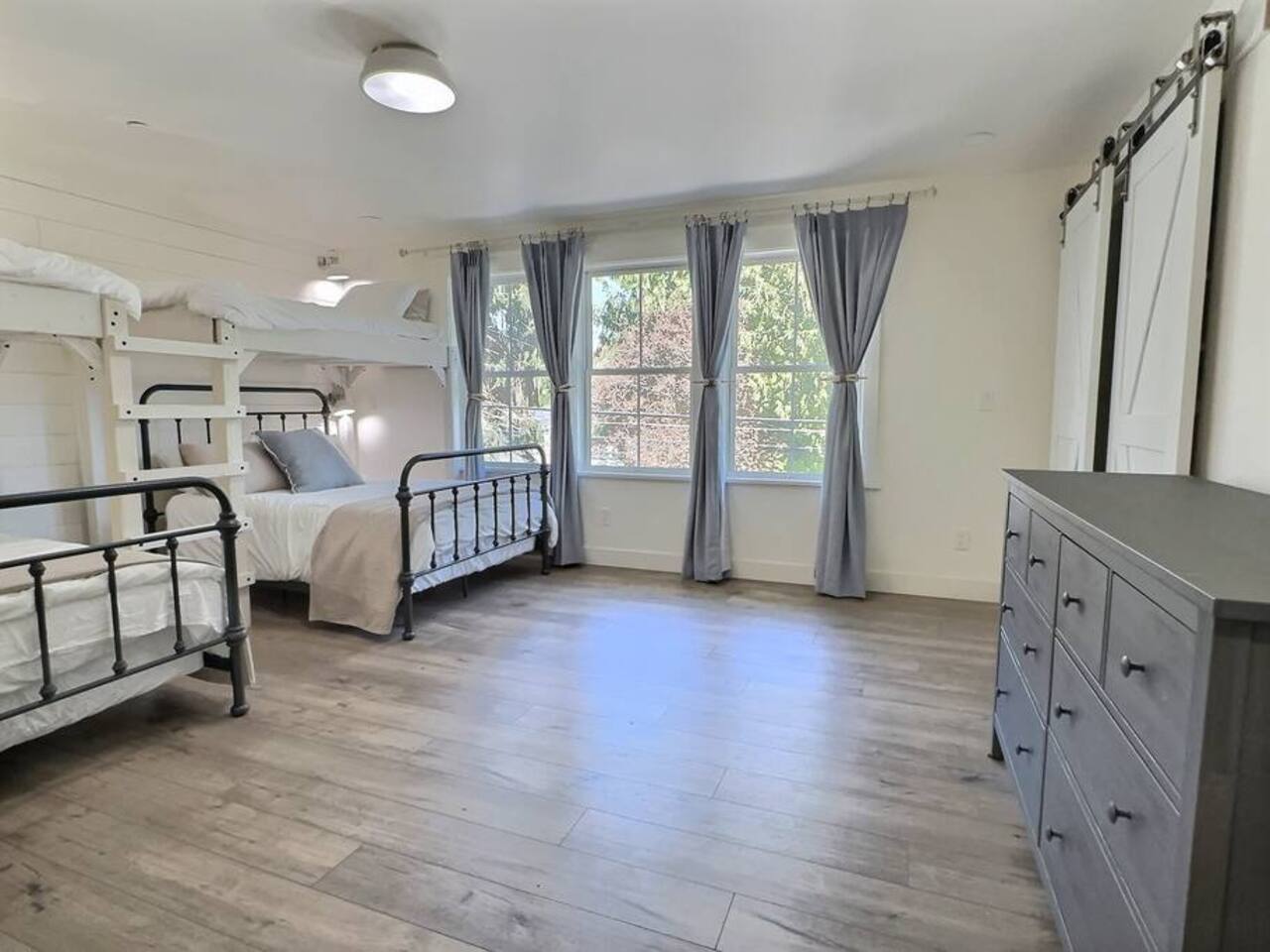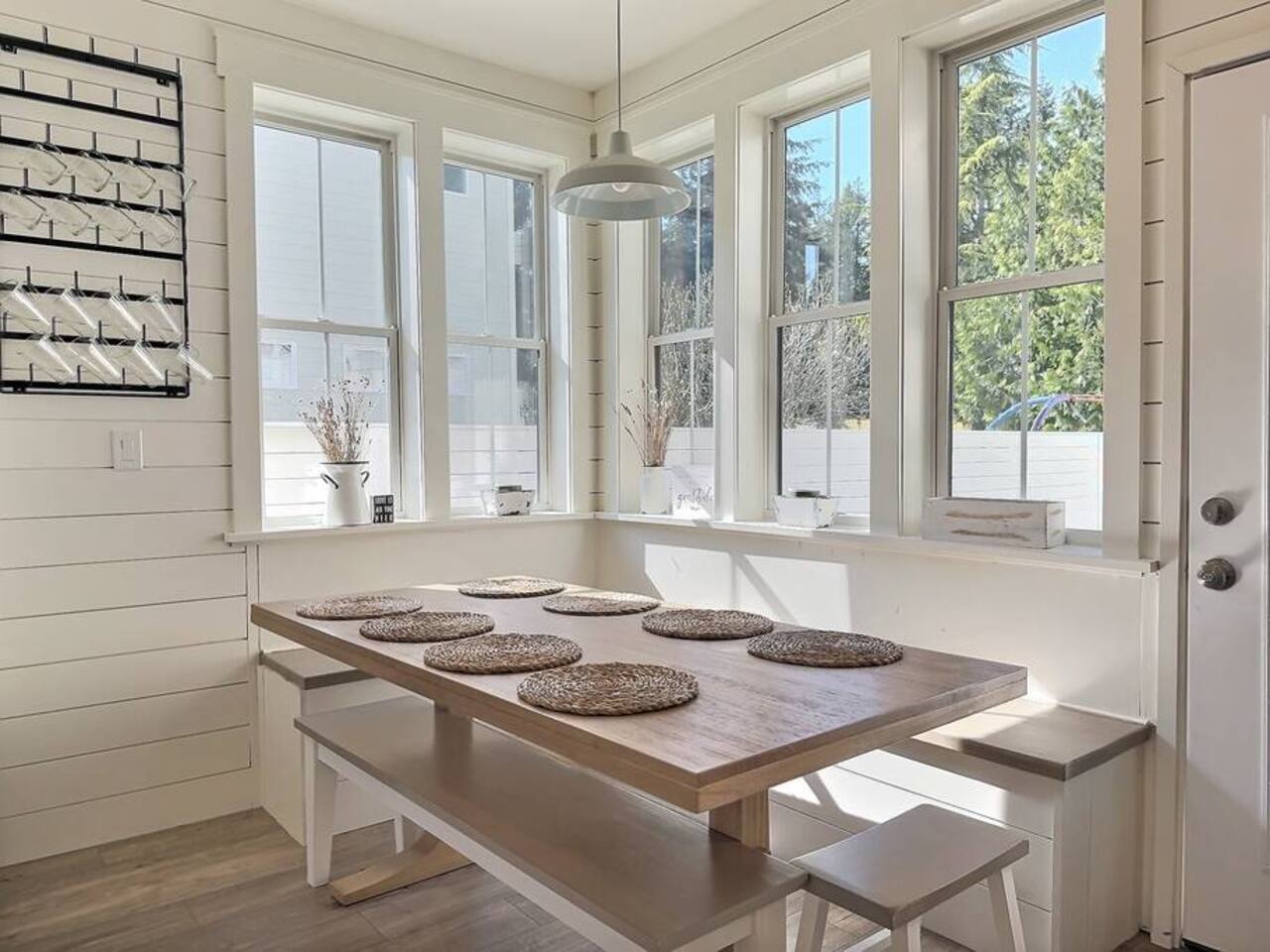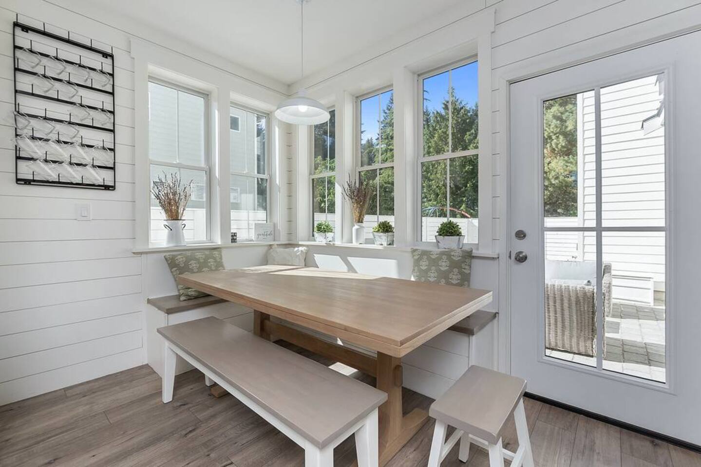 Welcome to Serenity at Shoreline, your invitation to gather, restore, and experience a slower rhythm—surrounded by beauty, comfort, and just the right touch of grace. Tucked in a quiet Shoreline neighborhood just north of Seattle, this modern white farmhouse was thoughtfully designed to hold both joy and stillness in equal measure. Driftwood tones, vintage touches, and sunlit spaces come together to create a stay that feels warm, grounded, and unforgettable. From shared meals around the oversized dining table to slow mornings with coffee in the garden, every inch of this home encourages you to soften, settle in, and stay awhile. Just blocks from the Shoreline light rail station, guests enjoy effortless access to both Seattle and Lynnwood, as well as quick connections to I-5 for convenient regional travel. At the heart of the home, you’ll find an open-concept living space with plush seating and a double-sided fireplace, connecting seamlessly to the chef’s kitchen. Outfitted with a six-burner range, island seating, and all the small appliances you might need, the kitchen is perfectly equipped for slow breakfasts, shared dinners, and everything in between. Just around the corner, a cozy theater room invites you to unwind with a favorite film or settle in for a movie night after a day of adventure. All common living spaces are located on the main floor—with the exception of the laundry room, which is tucked away for convenience. The home features five thoughtfully designed bedrooms and a third-floor crow’s nest den—each with its own character and charm. Whether you're hosting a large gathering, retreating with a smaller group, or simply seeking a quiet escape, there’s space to rest and reconnect in every corner. ________________________________________ Where You’ll Sleep 🌿 The Wisteria Suite — Main Floor, King Bed + En-Suite Bath This restful suite feels like a deep exhale—layered in muted light, gentle textures, and a quiet kind of elegance. Located on the main floor, it features a plush king bed, a private en-suite bathroom, and calming views of the cascading wisteria vines just beyond its windows. 🌲 The Driftwood Suite — Upper Floor, King Bed + En-Suite Bath A sanctuary in the sky. With vaulted shiplap ceilings and sun-drenched interiors, this upstairs suite offers both space and stillness. The five-piece en-suite bath features a decadent pedestal soaking tub, and a large TV makes it the perfect space for unwinding in comfort. 🕊 The Shoreline Room — Upper Floor, Queen Bed + Shared Bath Tranquil, simple, and serene, this queen bedroom is located near the shared hallway bath. Designed with early morning light and soft-toned stillness in mind, it’s a peaceful escape tucked just across from the Driftwood Suite. 🌙 The Sea Star Bunkroom — Upper Floor, 2 Twin-Over-Twin Bunks + Shared Bath Playful and cozy, this light-hearted space features two twin-over-twin bunk beds and plenty of charm. It’s ideal for cousins, siblings, or anyone young at heart. 🌸 The Hydrangea Room — Upper Floor, Queen Bed + En-Suite Bath Tucked toward the back of the home, this light-filled queen suite offers privacy and calm. It includes a private en-suite bathroom and a soft, muted palette. A TV makes it a perfect place to retreat and unwind. 🪶 The Lookout — Third Floor, Vaulted Den Perched at the very top of the house, this crow’s nest den is wrapped in treetop views. With vaulted ceilings and natural light, it’s perfect for journaling, quiet work, or creative solitude—your personal perch above it all. ________________________________________ Step outside into a fully fenced backyard where nature wraps around you like a gentle whisper. Twinkling lights twist above the outdoor dining space, hydrangeas bloom in blues and blush, and a soft green lawn invites you to slip off your shoes and feel the earth beneath your feet The home is equipped with everything you need for a seamless and comfortable stay: high-speed Wi-Fi, smart TVs, a full laundry room, luxurious linens, plush towels, and a curated starter supply of soaps and household essentials. Every space—every corner—has been arranged with care, wrapped in warmth, and built for ease. Reminiscent of classic townhomes and side-by-side estates, Serenity at Shoreline shares one wall with a neighboring private residence. Each home is fully self-contained, with its own private entrance, living quarters, yard, and parking—ensuring your stay feels peaceful, independent, and uninterrupted “Come as you are. Leave a little lighter.” This isn’t just a place to stay—it’s a gentle invitation to slow down, breathe deeper, and find a softer way of being, right here in the quiet heart of Shoreline.