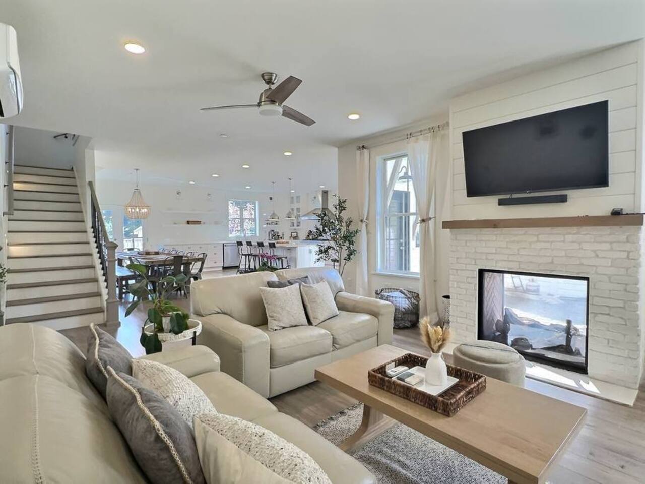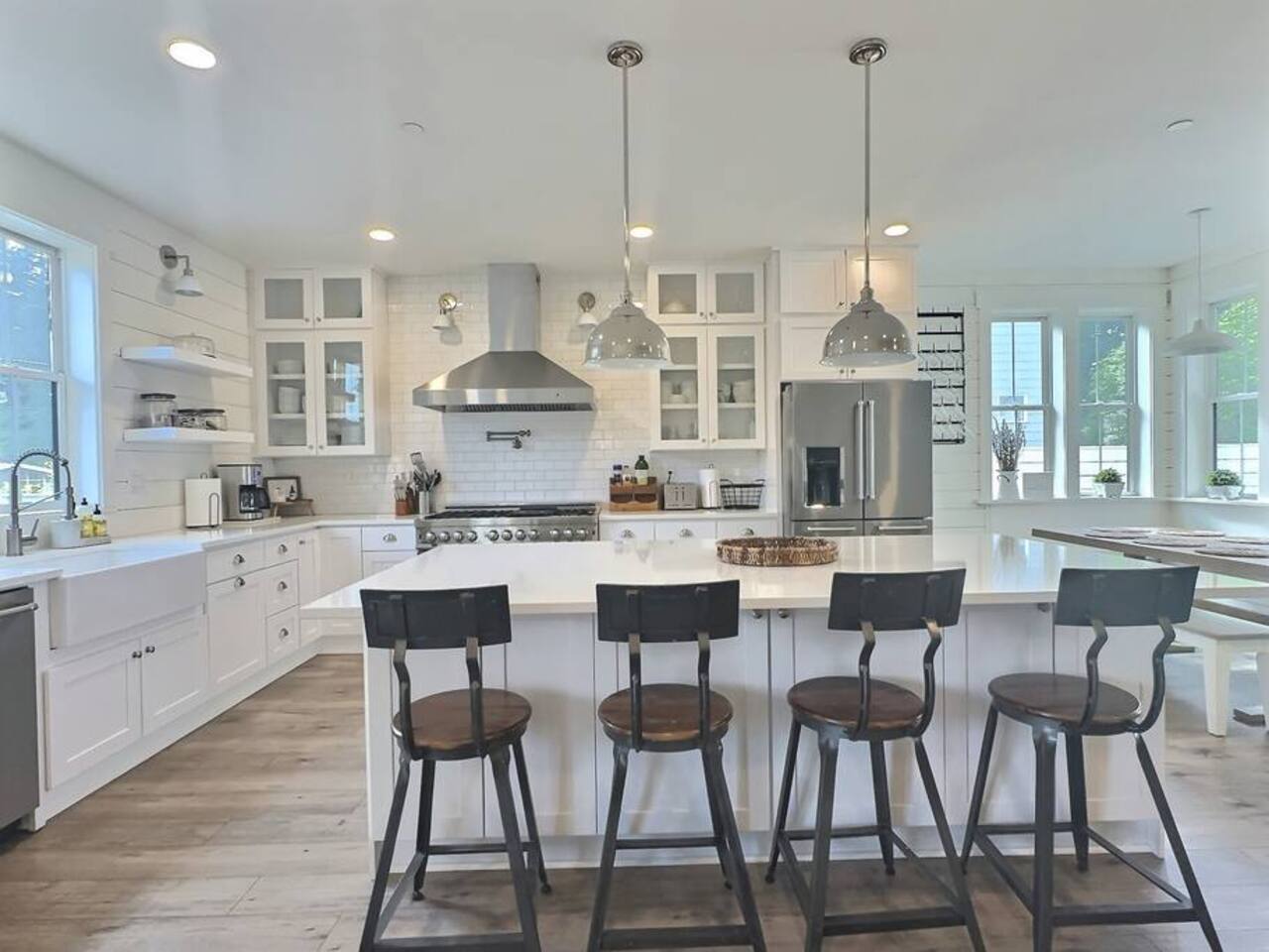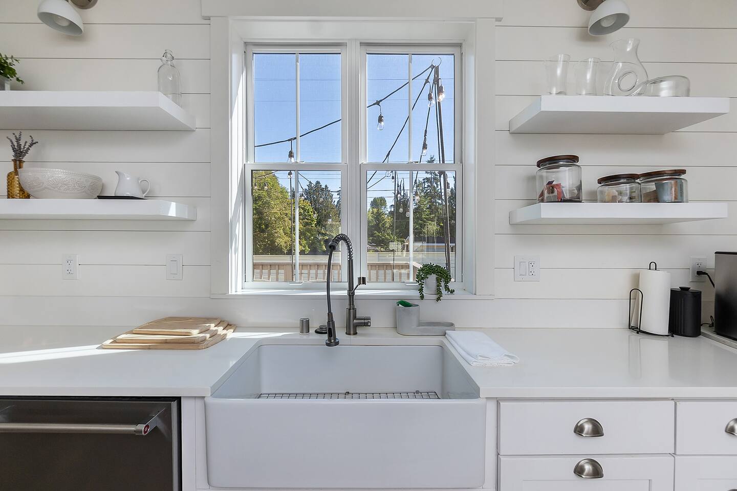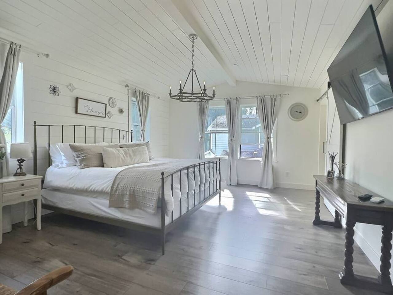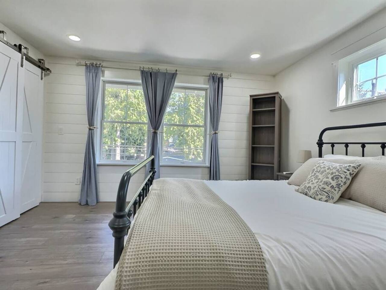 Welcome to Serenity at Shoreline, your invitation to gather, restore, and experience a slower rhythm—surrounded by beauty, comfort, and just the right touch of grace. Tucked in a quiet Shoreline neighborhood just north of Seattle, this modern white farmhouse was thoughtfully designed to hold both joy and stillness in equal measure. Driftwood tones, vintage touches, and sunlit spaces come together to create a stay that feels warm, grounded, and unforgettable. From shared meals around the oversized dining table to slow mornings with coffee in the garden, every inch of this home encourages you to soften, settle in, and stay awhile. Just blocks from the Shoreline light rail station, guests enjoy effortless access to both Seattle and Lynnwood, as well as quick connections to I-5 for convenient regional travel. At the heart of the home, you’ll find an open-concept living space with plush seating and a double-sided fireplace, connecting seamlessly to the chef’s kitchen. Outfitted with a six-burner range, island seating, and all the small appliances you might need, the kitchen is perfectly equipped for slow breakfasts, shared dinners, and everything in between. Just around the corner, a cozy theater room invites you to unwind with a favorite film or settle in for a movie night after a day of adventure. All common living spaces are located on the main floor—with the exception of the laundry room, which is tucked away for convenience. The home features five thoughtfully designed bedrooms and a third-floor crow’s nest den—each with its own character and charm. Whether you're hosting a large gathering, retreating with a smaller group, or simply seeking a quiet escape, there’s space to rest and reconnect in every corner. ________________________________________ Where You’ll Sleep 🌿 The Wisteria Suite — Main Floor, King Bed + En-Suite Bath This restful suite feels like a deep exhale—layered in muted light, gentle textures, and a quiet kind of elegance. Located on the main floor, it features a plush king bed, a private en-suite bathroom, and calming views of the cascading wisteria vines just beyond its windows. 🌲 The Driftwood Suite — Upper Floor, King Bed + En-Suite Bath A sanctuary in the sky. With vaulted shiplap ceilings and sun-drenched interiors, this upstairs suite offers both space and stillness. The five-piece en-suite bath features a decadent pedestal soaking tub, and a large TV makes it the perfect space for unwinding in comfort. 🕊 The Shoreline Room — Upper Floor, Queen Bed + Shared Bath Tranquil, simple, and serene, this queen bedroom is located near the shared hallway bath. Designed with early morning light and soft-toned stillness in mind, it’s a peaceful escape tucked just across from the Driftwood Suite. 🌙 The Sea Star Bunkroom — Upper Floor, 2 Twin-Over-Twin Bunks + Shared Bath Playful and cozy, this light-hearted space features two twin-over-twin bunk beds and plenty of charm. It’s ideal for cousins, siblings, or anyone young at heart. 🌸 The Hydrangea Room — Upper Floor, Queen Bed + En-Suite Bath Tucked toward the back of the home, this light-filled queen suite offers privacy and calm. It includes a private en-suite bathroom and a soft, muted palette. A TV makes it a perfect place to retreat and unwind. 🪶 The Lookout — Third Floor, Vaulted Den Perched at the very top of the house, this crow’s nest den is wrapped in treetop views. With vaulted ceilings and natural light, it’s perfect for journaling, quiet work, or creative solitude—your personal perch above it all. ________________________________________ Step outside into a fully fenced backyard where nature wraps around you like a gentle whisper. Twinkling lights twist above the outdoor dining space, hydrangeas bloom in blues and blush, and a soft green lawn invites you to slip off your shoes and feel the earth beneath your feet The home is equipped with everything you need for a seamless and comfortable stay: high-speed Wi-Fi, smart TVs, a full laundry room, luxurious linens, plush towels, and a curated starter supply of soaps and household essentials. Every space—every corner—has been arranged with care, wrapped in warmth, and built for ease. Reminiscent of classic townhomes and side-by-side estates, Serenity at Shoreline shares one wall with a neighboring private residence. Each home is fully self-contained, with its own private entrance, living quarters, yard, and parking—ensuring your stay feels peaceful, independent, and uninterrupted “Come as you are. Leave a little lighter.” This isn’t just a place to stay—it’s a gentle invitation to slow down, breathe deeper, and find a softer way of being, right here in the quiet heart of Shoreline.