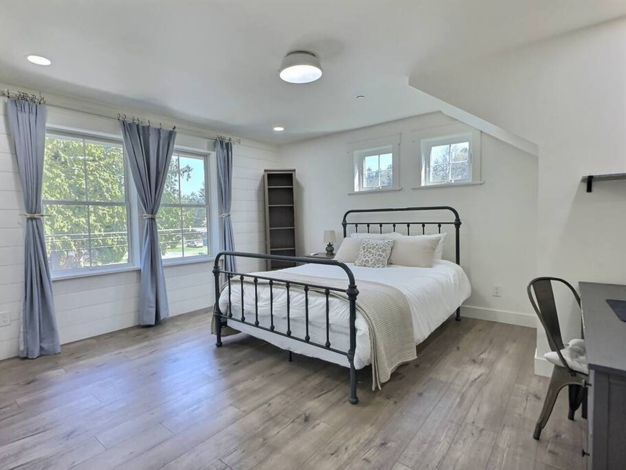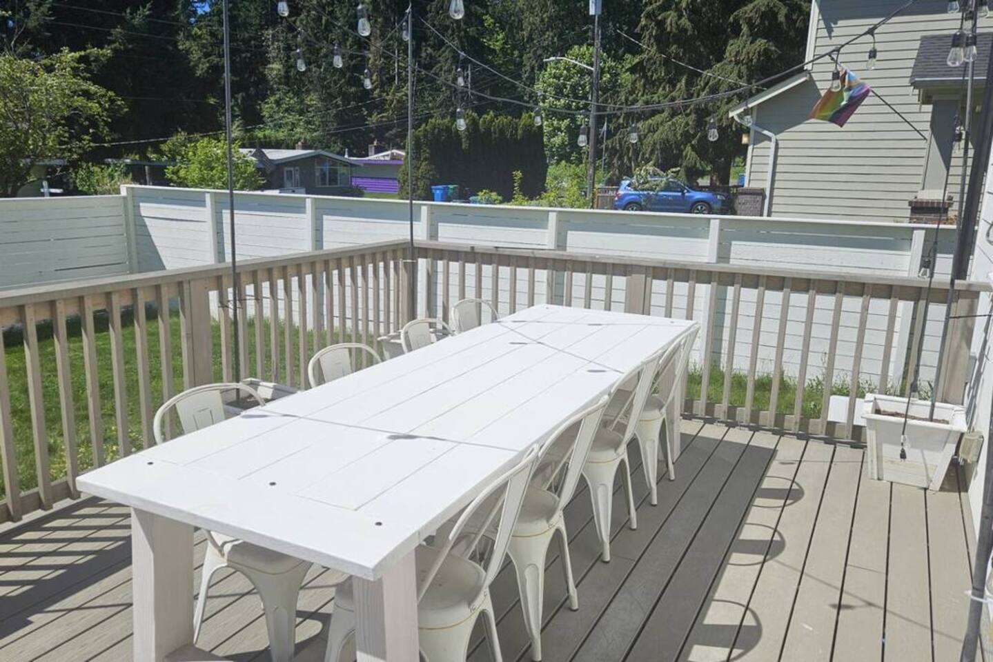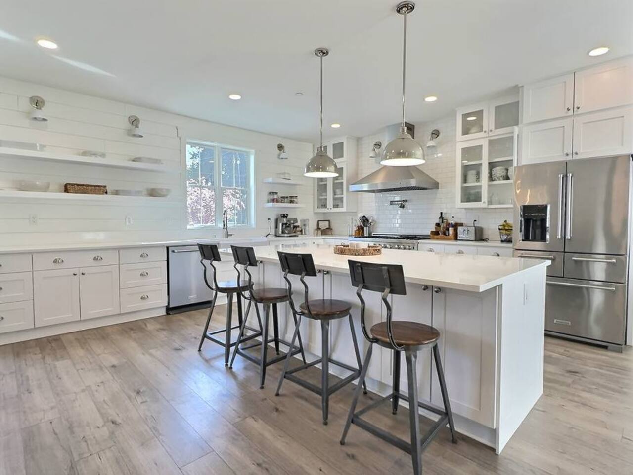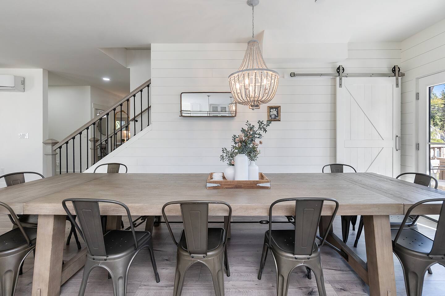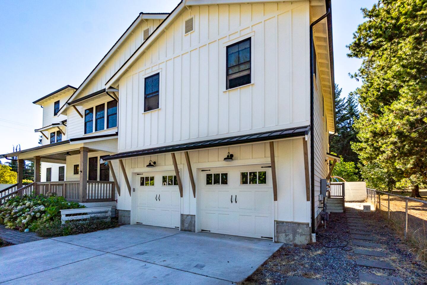Welcome to Serenity at Shoreline, your invitation to gather, restore, and experience a slower rhythm—surrounded by beauty, comfort, and just the right touch of grace. Tucked in a quiet Shoreline neighborhood just north of Seattle, this modern white farmhouse was thoughtfully designed to hold both joy and stillness in equal measure. Driftwood tones, vintage touches, and sunlit spaces come together to create a stay that feels warm, grounded, and unforgettable. From shared meals around the oversized dining table to slow mornings with coffee in the garden, every inch of this home encourages you to soften, settle in, and stay awhile. Just blocks from the Shoreline light rail station, guests enjoy effortless access to both Seattle and Lynnwood, as well as quick connections to I-5 for convenient regional travel. At the heart of the home, you’ll find an open-concept living space with plush seating and a double-sided fireplace, connecting seamlessly to the chef’s kitchen. Outfitted with a six-burner range, island seating, and all the small appliances you might need, the kitchen is perfectly equipped for slow breakfasts, shared dinners, and everything in between. Just around the corner, a cozy theater room invites you to unwind with a favorite film or settle in for a movie night after a day of adventure. All common living spaces are located on the main floor—with the exception of the laundry room, which is tucked away for convenience. The home features five thoughtfully designed bedrooms and a third-floor crow’s nest den—each with its own character and charm. Whether you're hosting a large gathering, retreating with a smaller group, or simply seeking a quiet escape, there’s space to rest and reconnect in every corner. ________________________________________ Where You’ll Sleep 🌿 The Wisteria Suite — Main Floor, King Bed + En-Suite Bath This restful suite feels like a deep exhale—layered in muted light, gentle textures, and a quiet kind of elegance. Located on the main floor, it features a plush king bed, a private en-suite bathroom, and calming views of the cascading wisteria vines just beyond its windows. 🌲 The Driftwood Suite — Upper Floor, King Bed + En-Suite Bath A sanctuary in the sky. With vaulted shiplap ceilings and sun-drenched interiors, this upstairs suite offers both space and stillness. The five-piece en-suite bath features a decadent pedestal soaking tub, and a large TV makes it the perfect space for unwinding in comfort. 🕊 The Shoreline Room — Upper Floor, Queen Bed + Shared Bath Tranquil, simple, and serene, this queen bedroom is located near the shared hallway bath. Designed with early morning light and soft-toned stillness in mind, it’s a peaceful escape tucked just across from the Driftwood Suite. 🌙 The Sea Star Bunkroom — Upper Floor, 2 Twin-Over-Twin Bunks + Shared Bath Playful and cozy, this light-hearted space features two twin-over-twin bunk beds and plenty of charm. It’s ideal for cousins, siblings, or anyone young at heart. 🌸 The Hydrangea Room — Upper Floor, Queen Bed + En-Suite Bath Tucked toward the back of the home, this light-filled queen suite offers privacy and calm. It includes a private en-suite bathroom and a soft, muted palette. A TV makes it a perfect place to retreat and unwind. 🪶 The Lookout — Third Floor, Vaulted Den Perched at the very top of the house, this crow’s nest den is wrapped in treetop views. With vaulted ceilings and natural light, it’s perfect for journaling, quiet work, or creative solitude—your personal perch above it all. ________________________________________ Step outside into a fully fenced backyard where nature wraps around you like a gentle whisper. Twinkling lights twist above the outdoor dining space, hydrangeas bloom in blues and blush, and a soft green lawn invites you to slip off your shoes and feel the earth beneath your feet The home is equipped with everything you need for a seamless and comfortable stay: high-speed Wi-Fi, smart TVs, a full laundry room, luxurious linens, plush towels, and a curated starter supply of soaps and household essentials. Every space—every corner—has been arranged with care, wrapped in warmth, and built for ease. Reminiscent of classic townhomes and side-by-side estates, Serenity at Shoreline shares one wall with a neighboring private residence. Each home is fully self-contained, with its own private entrance, living quarters, yard, and parking—ensuring your stay feels peaceful, independent, and uninterrupted “Come as you are. Leave a little lighter.” This isn’t just a place to stay—it’s a gentle invitation to slow down, breathe deeper, and find a softer way of being, right here in the quiet heart of Shoreline.