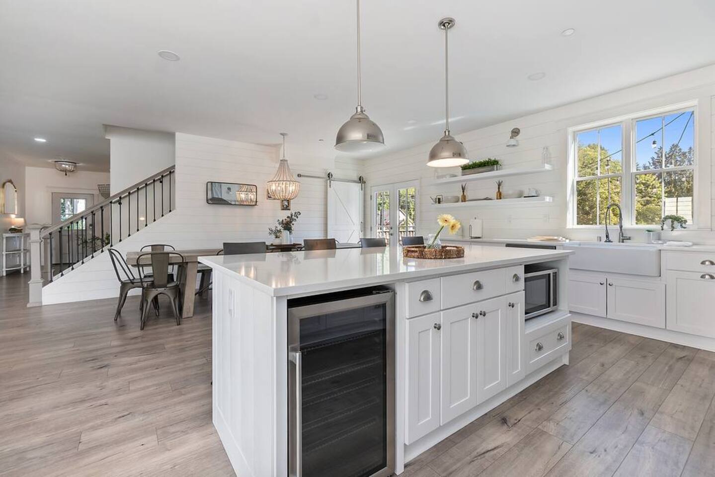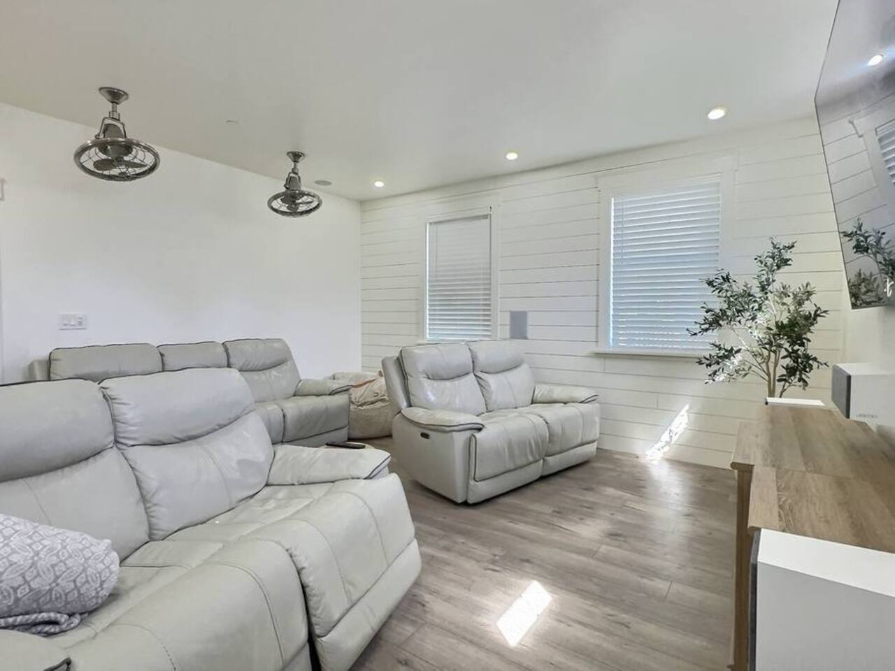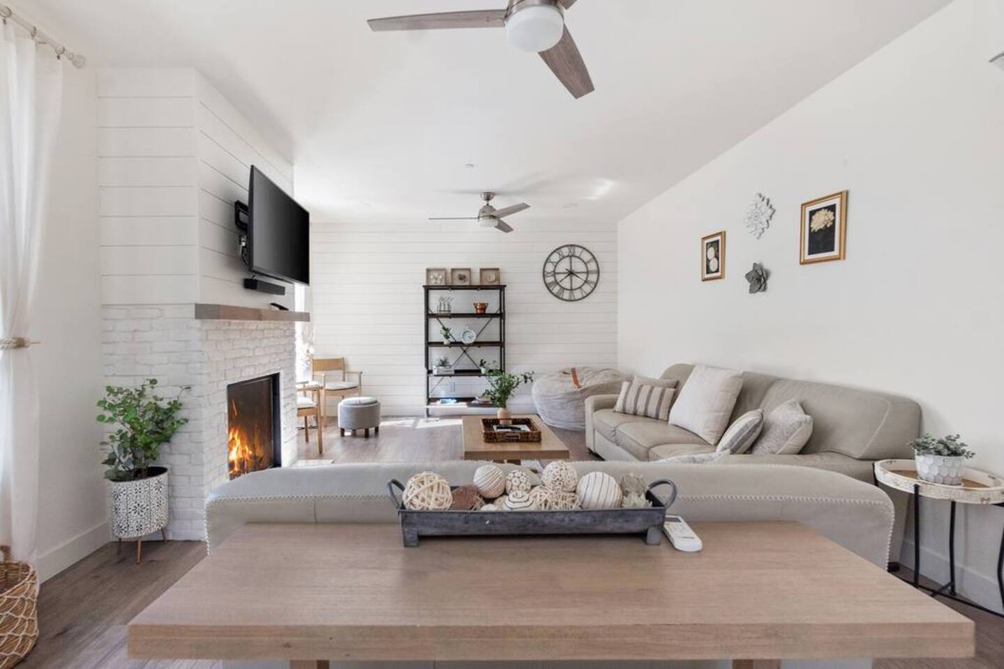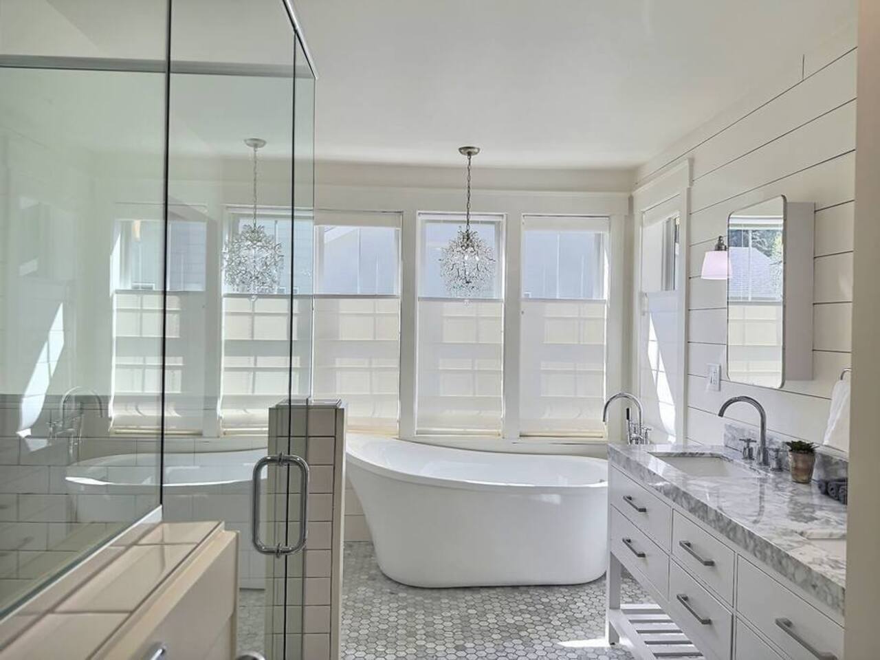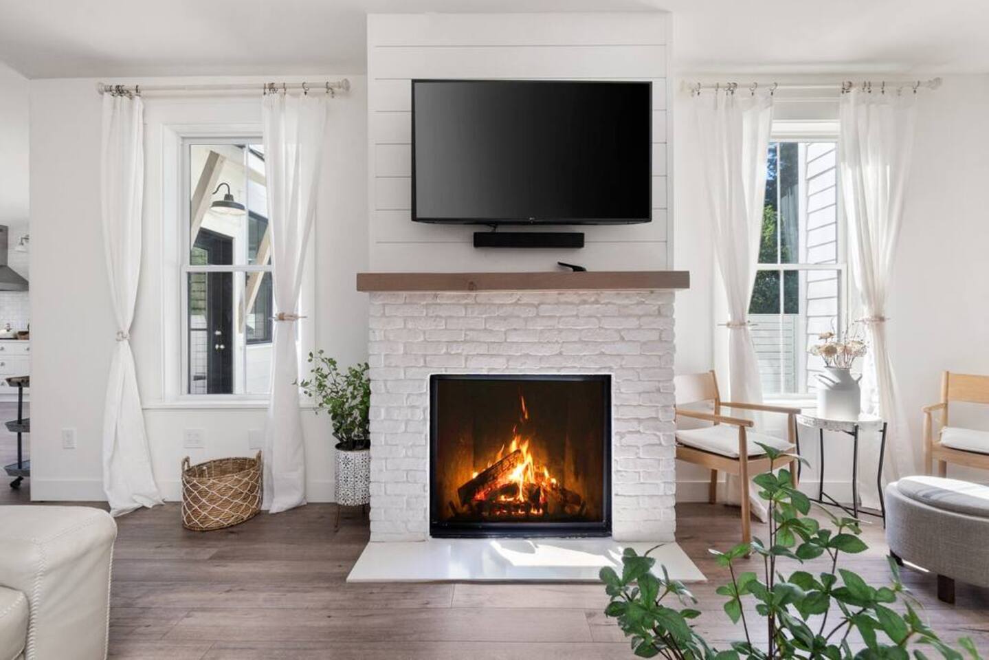 Welcome to Serenity at Shoreline, your invitation to gather, restore, and experience a slower rhythm—surrounded by beauty, comfort, and just the right touch of grace. Tucked in a quiet Shoreline neighborhood just north of Seattle, this modern white farmhouse was thoughtfully designed to hold both joy and stillness in equal measure. Driftwood tones, vintage touches, and sunlit spaces come together to create a stay that feels warm, grounded, and unforgettable. From shared meals around the oversized dining table to slow mornings with coffee in the garden, every inch of this home encourages you to soften, settle in, and stay awhile. Just blocks from the Shoreline light rail station, guests enjoy effortless access to both Seattle and Lynnwood, as well as quick connections to I-5 for convenient regional travel. At the heart of the home, you’ll find an open-concept living space with plush seating and a double-sided fireplace, connecting seamlessly to the chef’s kitchen. Outfitted with a six-burner range, island seating, and all the small appliances you might need, the kitchen is perfectly equipped for slow breakfasts, shared dinners, and everything in between. Just around the corner, a cozy theater room invites you to unwind with a favorite film or settle in for a movie night after a day of adventure. All common living spaces are located on the main floor—with the exception of the laundry room, which is tucked away for convenience. The home features five thoughtfully designed bedrooms and a third-floor crow’s nest den—each with its own character and charm. Whether you're hosting a large gathering, retreating with a smaller group, or simply seeking a quiet escape, there’s space to rest and reconnect in every corner. ________________________________________ Where You’ll Sleep 🌿 The Wisteria Suite — Main Floor, King Bed + En-Suite Bath This restful suite feels like a deep exhale—layered in muted light, gentle textures, and a quiet kind of elegance. Located on the main floor, it features a plush king bed, a private en-suite bathroom, and calming views of the cascading wisteria vines just beyond its windows. 🌲 The Driftwood Suite — Upper Floor, King Bed + En-Suite Bath A sanctuary in the sky. With vaulted shiplap ceilings and sun-drenched interiors, this upstairs suite offers both space and stillness. The five-piece en-suite bath features a decadent pedestal soaking tub, and a large TV makes it the perfect space for unwinding in comfort. 🕊 The Shoreline Room — Upper Floor, Queen Bed + Shared Bath Tranquil, simple, and serene, this queen bedroom is located near the shared hallway bath. Designed with early morning light and soft-toned stillness in mind, it’s a peaceful escape tucked just across from the Driftwood Suite. 🌙 The Sea Star Bunkroom — Upper Floor, 2 Twin-Over-Twin Bunks + Shared Bath Playful and cozy, this light-hearted space features two twin-over-twin bunk beds and plenty of charm. It’s ideal for cousins, siblings, or anyone young at heart. 🌸 The Hydrangea Room — Upper Floor, Queen Bed + En-Suite Bath Tucked toward the back of the home, this light-filled queen suite offers privacy and calm. It includes a private en-suite bathroom and a soft, muted palette. A TV makes it a perfect place to retreat and unwind. 🪶 The Lookout — Third Floor, Vaulted Den Perched at the very top of the house, this crow’s nest den is wrapped in treetop views. With vaulted ceilings and natural light, it’s perfect for journaling, quiet work, or creative solitude—your personal perch above it all. ________________________________________ Step outside into a fully fenced backyard where nature wraps around you like a gentle whisper. Twinkling lights twist above the outdoor dining space, hydrangeas bloom in blues and blush, and a soft green lawn invites you to slip off your shoes and feel the earth beneath your feet The home is equipped with everything you need for a seamless and comfortable stay: high-speed Wi-Fi, smart TVs, a full laundry room, luxurious linens, plush towels, and a curated starter supply of soaps and household essentials. Every space—every corner—has been arranged with care, wrapped in warmth, and built for ease. Reminiscent of classic townhomes and side-by-side estates, Serenity at Shoreline shares one wall with a neighboring private residence. Each home is fully self-contained, with its own private entrance, living quarters, yard, and parking—ensuring your stay feels peaceful, independent, and uninterrupted “Come as you are. Leave a little lighter.” This isn’t just a place to stay—it’s a gentle invitation to slow down, breathe deeper, and find a softer way of being, right here in the quiet heart of Shoreline.