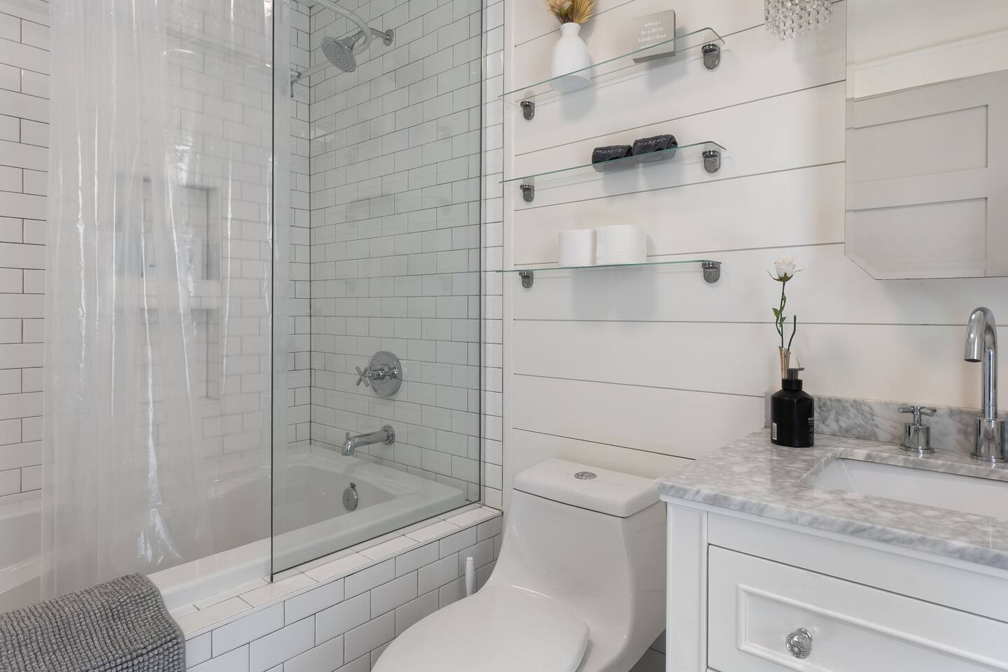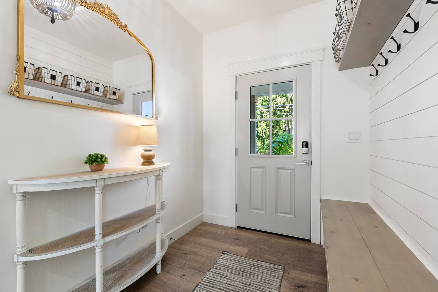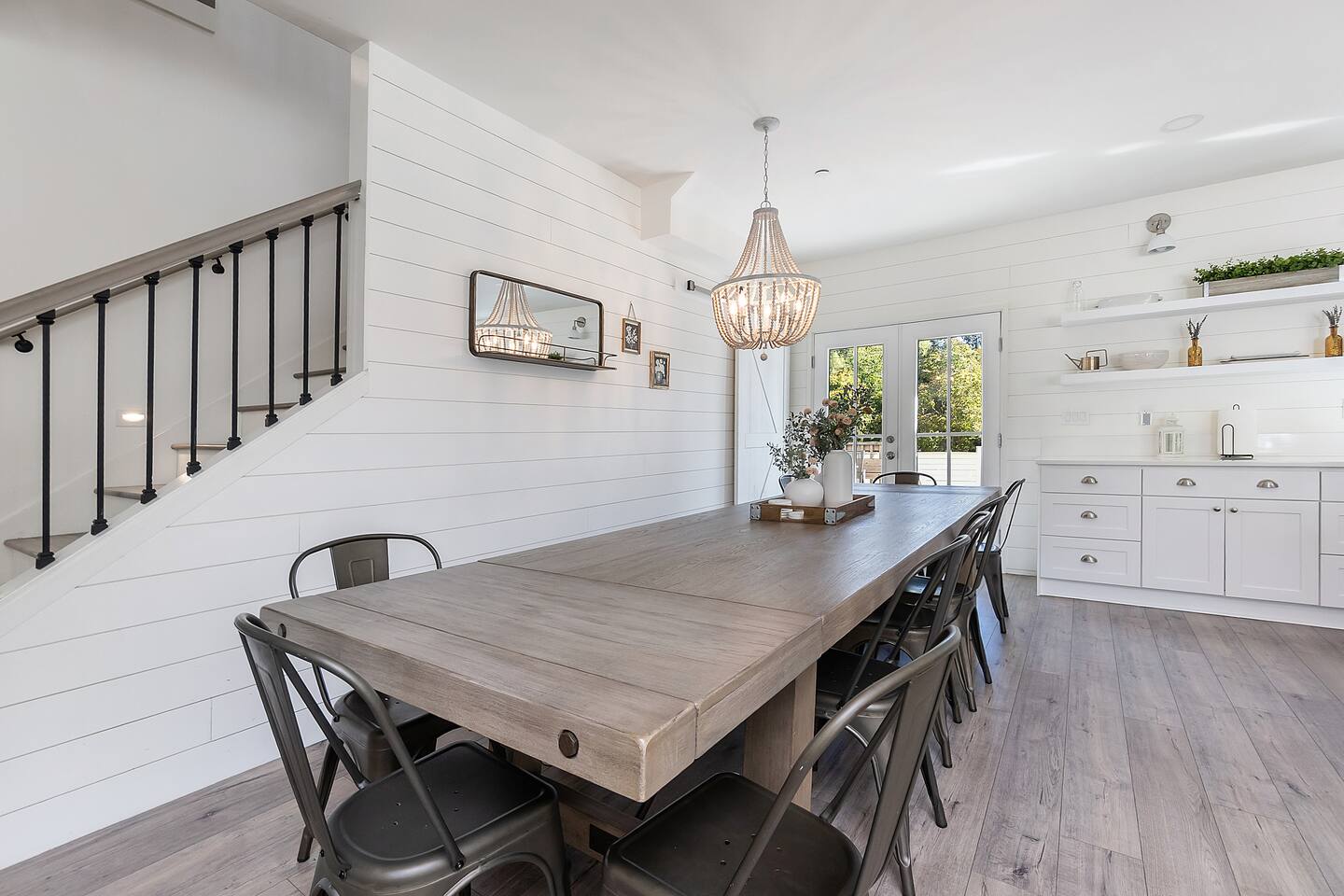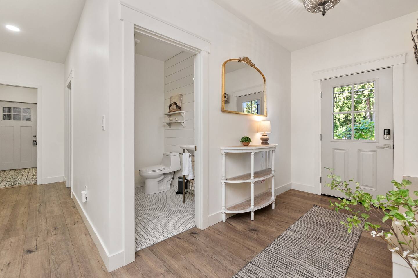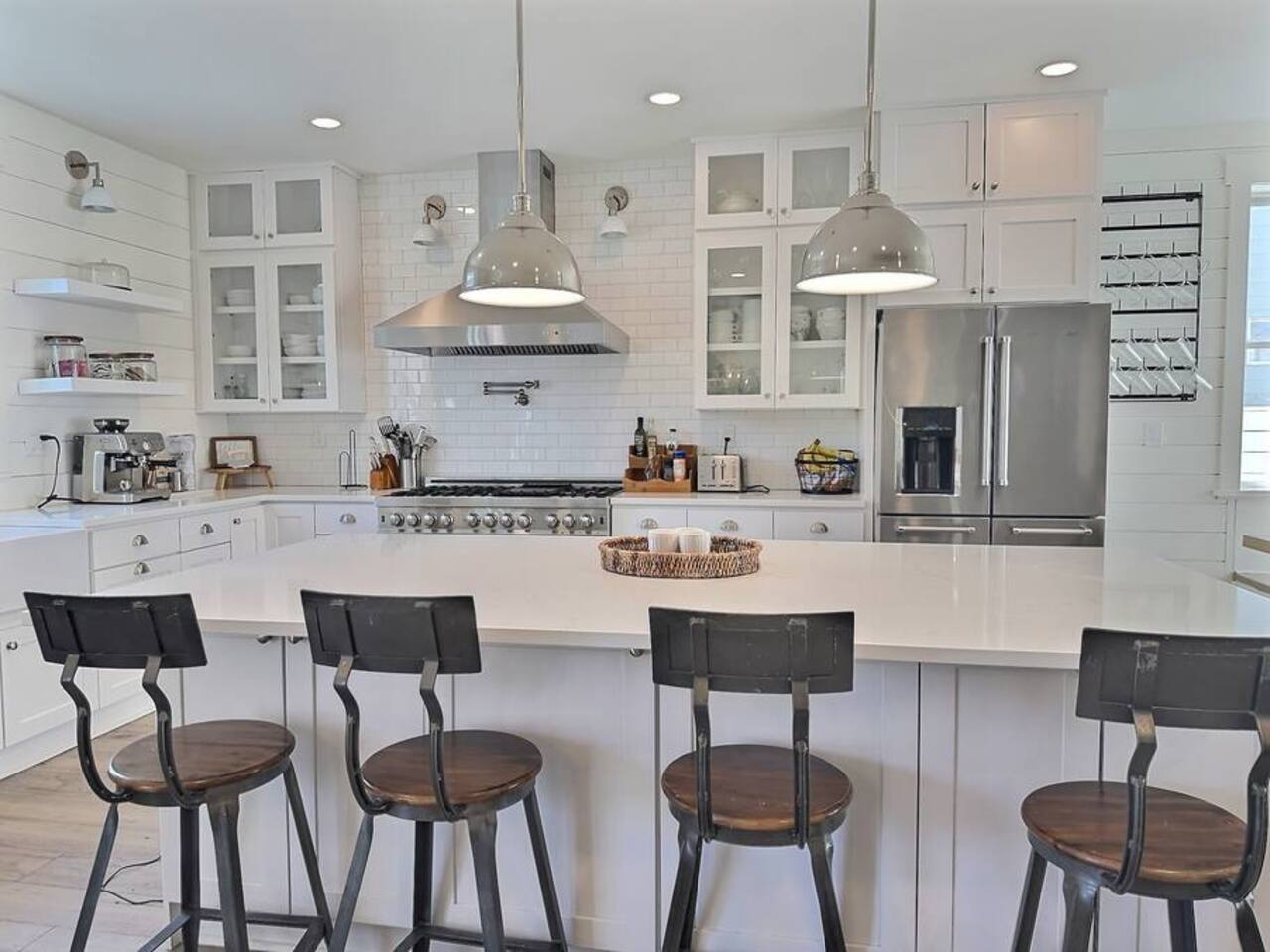Welcome to Serenity at Shoreline, your invitation to gather, restore, and experience a slower rhythm—surrounded by beauty, comfort, and just the right touch of grace. Tucked in a quiet Shoreline neighborhood just north of Seattle, this modern white farmhouse was thoughtfully designed to hold both joy and stillness in equal measure. Driftwood tones, vintage touches, and sunlit spaces come together to create a stay that feels warm, grounded, and unforgettable. From shared meals around the oversized dining table to slow mornings with coffee in the garden, every inch of this home encourages you to soften, settle in, and stay awhile. Just blocks from the Shoreline light rail station, guests enjoy effortless access to both Seattle and Lynnwood, as well as quick connections to I-5 for convenient regional travel. At the heart of the home, you’ll find an open-concept living space with plush seating and a double-sided fireplace, connecting seamlessly to the chef’s kitchen. Outfitted with a six-burner range, island seating, and all the small appliances you might need, the kitchen is perfectly equipped for slow breakfasts, shared dinners, and everything in between. Just around the corner, a cozy theater room invites you to unwind with a favorite film or settle in for a movie night after a day of adventure. All common living spaces are located on the main floor—with the exception of the laundry room, which is tucked away for convenience. The home features five thoughtfully designed bedrooms and a third-floor crow’s nest den—each with its own character and charm. Whether you're hosting a large gathering, retreating with a smaller group, or simply seeking a quiet escape, there’s space to rest and reconnect in every corner. ________________________________________ Where You’ll Sleep 🌿 The Wisteria Suite — Main Floor, King Bed + En-Suite Bath This restful suite feels like a deep exhale—layered in muted light, gentle textures, and a quiet kind of elegance. Located on the main floor, it features a plush king bed, a private en-suite bathroom, and calming views of the cascading wisteria vines just beyond its windows. 🌲 The Driftwood Suite — Upper Floor, King Bed + En-Suite Bath A sanctuary in the sky. With vaulted shiplap ceilings and sun-drenched interiors, this upstairs suite offers both space and stillness. The five-piece en-suite bath features a decadent pedestal soaking tub, and a large TV makes it the perfect space for unwinding in comfort. 🕊 The Shoreline Room — Upper Floor, Queen Bed + Shared Bath Tranquil, simple, and serene, this queen bedroom is located near the shared hallway bath. Designed with early morning light and soft-toned stillness in mind, it’s a peaceful escape tucked just across from the Driftwood Suite. 🌙 The Sea Star Bunkroom — Upper Floor, 2 Twin-Over-Twin Bunks + Shared Bath Playful and cozy, this light-hearted space features two twin-over-twin bunk beds and plenty of charm. It’s ideal for cousins, siblings, or anyone young at heart. 🌸 The Hydrangea Room — Upper Floor, Queen Bed + En-Suite Bath Tucked toward the back of the home, this light-filled queen suite offers privacy and calm. It includes a private en-suite bathroom and a soft, muted palette. A TV makes it a perfect place to retreat and unwind. 🪶 The Lookout — Third Floor, Vaulted Den Perched at the very top of the house, this crow’s nest den is wrapped in treetop views. With vaulted ceilings and natural light, it’s perfect for journaling, quiet work, or creative solitude—your personal perch above it all. ________________________________________ Step outside into a fully fenced backyard where nature wraps around you like a gentle whisper. Twinkling lights twist above the outdoor dining space, hydrangeas bloom in blues and blush, and a soft green lawn invites you to slip off your shoes and feel the earth beneath your feet The home is equipped with everything you need for a seamless and comfortable stay: high-speed Wi-Fi, smart TVs, a full laundry room, luxurious linens, plush towels, and a curated starter supply of soaps and household essentials. Every space—every corner—has been arranged with care, wrapped in warmth, and built for ease. Reminiscent of classic townhomes and side-by-side estates, Serenity at Shoreline shares one wall with a neighboring private residence. Each home is fully self-contained, with its own private entrance, living quarters, yard, and parking—ensuring your stay feels peaceful, independent, and uninterrupted “Come as you are. Leave a little lighter.” This isn’t just a place to stay—it’s a gentle invitation to slow down, breathe deeper, and find a softer way of being, right here in the quiet heart of Shoreline.