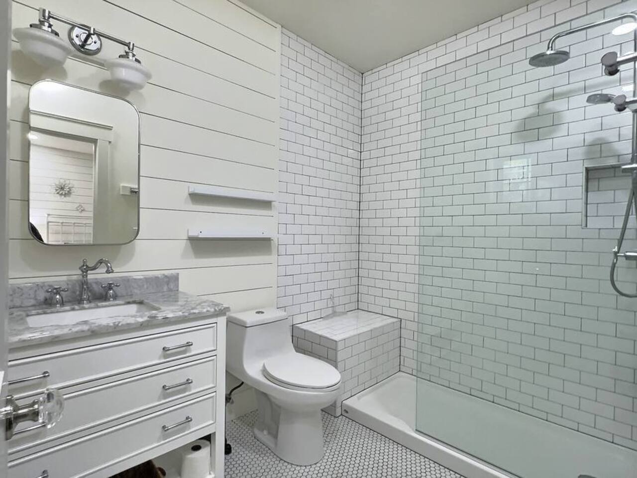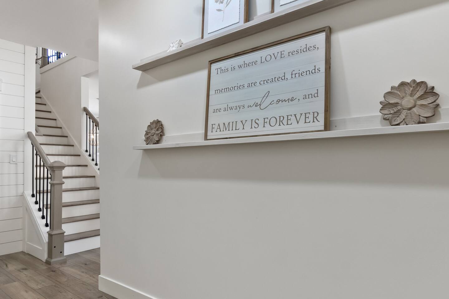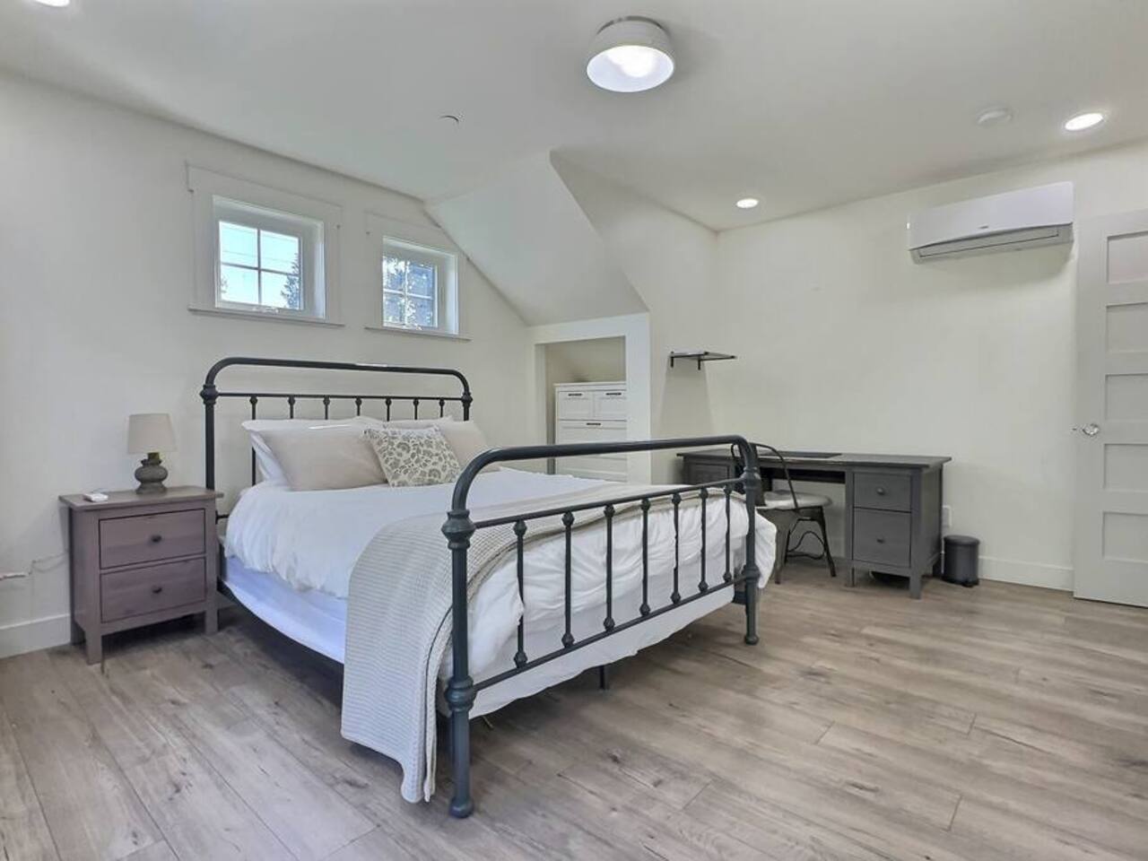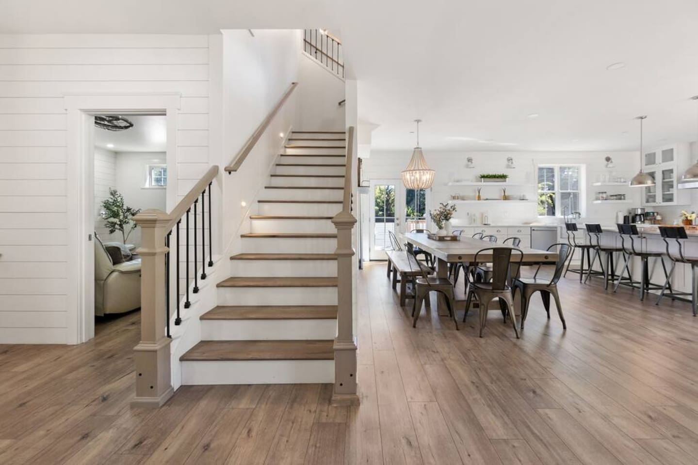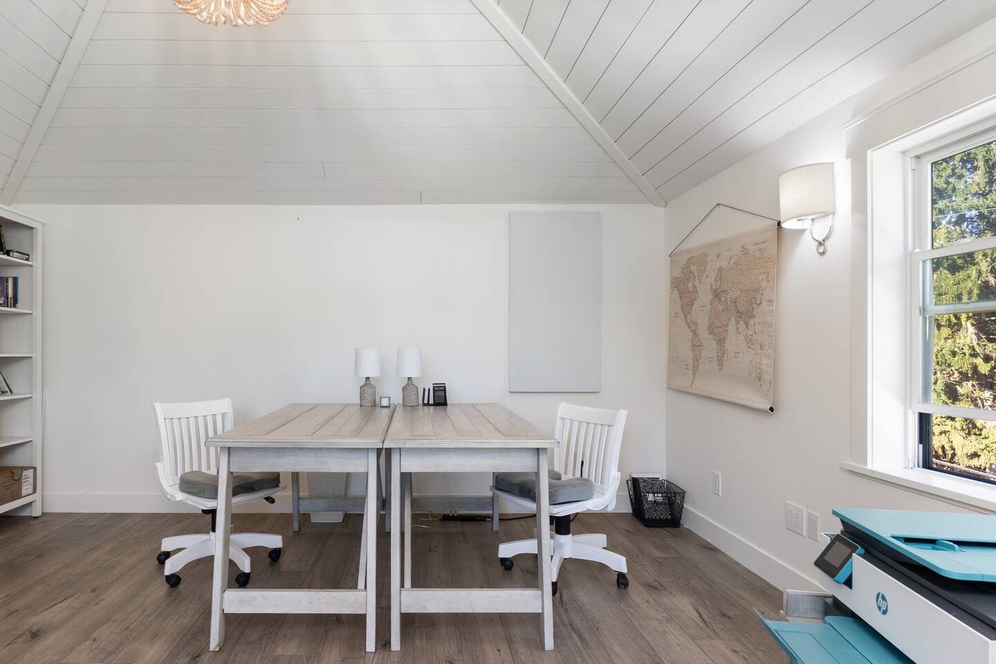 Welcome to Serenity at Shoreline, your invitation to gather, restore, and experience a slower rhythm—surrounded by beauty, comfort, and just the right touch of grace. Tucked in a quiet Shoreline neighborhood just north of Seattle, this modern white farmhouse was thoughtfully designed to hold both joy and stillness in equal measure. Driftwood tones, vintage touches, and sunlit spaces come together to create a stay that feels warm, grounded, and unforgettable. From shared meals around the oversized dining table to slow mornings with coffee in the garden, every inch of this home encourages you to soften, settle in, and stay awhile. Just blocks from the Shoreline light rail station, guests enjoy effortless access to both Seattle and Lynnwood, as well as quick connections to I-5 for convenient regional travel. At the heart of the home, you’ll find an open-concept living space with plush seating and a double-sided fireplace, connecting seamlessly to the chef’s kitchen. Outfitted with a six-burner range, island seating, and all the small appliances you might need, the kitchen is perfectly equipped for slow breakfasts, shared dinners, and everything in between. Just around the corner, a cozy theater room invites you to unwind with a favorite film or settle in for a movie night after a day of adventure. All common living spaces are located on the main floor—with the exception of the laundry room, which is tucked away for convenience. The home features five thoughtfully designed bedrooms and a third-floor crow’s nest den—each with its own character and charm. Whether you're hosting a large gathering, retreating with a smaller group, or simply seeking a quiet escape, there’s space to rest and reconnect in every corner. ________________________________________ Where You’ll Sleep 🌿 The Wisteria Suite — Main Floor, King Bed + En-Suite Bath This restful suite feels like a deep exhale—layered in muted light, gentle textures, and a quiet kind of elegance. Located on the main floor, it features a plush king bed, a private en-suite bathroom, and calming views of the cascading wisteria vines just beyond its windows. 🌲 The Driftwood Suite — Upper Floor, King Bed + En-Suite Bath A sanctuary in the sky. With vaulted shiplap ceilings and sun-drenched interiors, this upstairs suite offers both space and stillness. The five-piece en-suite bath features a decadent pedestal soaking tub, and a large TV makes it the perfect space for unwinding in comfort. 🕊 The Shoreline Room — Upper Floor, Queen Bed + Shared Bath Tranquil, simple, and serene, this queen bedroom is located near the shared hallway bath. Designed with early morning light and soft-toned stillness in mind, it’s a peaceful escape tucked just across from the Driftwood Suite. 🌙 The Sea Star Bunkroom — Upper Floor, 2 Twin-Over-Twin Bunks + Shared Bath Playful and cozy, this light-hearted space features two twin-over-twin bunk beds and plenty of charm. It’s ideal for cousins, siblings, or anyone young at heart. 🌸 The Hydrangea Room — Upper Floor, Queen Bed + En-Suite Bath Tucked toward the back of the home, this light-filled queen suite offers privacy and calm. It includes a private en-suite bathroom and a soft, muted palette. A TV makes it a perfect place to retreat and unwind. 🪶 The Lookout — Third Floor, Vaulted Den Perched at the very top of the house, this crow’s nest den is wrapped in treetop views. With vaulted ceilings and natural light, it’s perfect for journaling, quiet work, or creative solitude—your personal perch above it all. ________________________________________ Step outside into a fully fenced backyard where nature wraps around you like a gentle whisper. Twinkling lights twist above the outdoor dining space, hydrangeas bloom in blues and blush, and a soft green lawn invites you to slip off your shoes and feel the earth beneath your feet The home is equipped with everything you need for a seamless and comfortable stay: high-speed Wi-Fi, smart TVs, a full laundry room, luxurious linens, plush towels, and a curated starter supply of soaps and household essentials. Every space—every corner—has been arranged with care, wrapped in warmth, and built for ease. Reminiscent of classic townhomes and side-by-side estates, Serenity at Shoreline shares one wall with a neighboring private residence. Each home is fully self-contained, with its own private entrance, living quarters, yard, and parking—ensuring your stay feels peaceful, independent, and uninterrupted “Come as you are. Leave a little lighter.” This isn’t just a place to stay—it’s a gentle invitation to slow down, breathe deeper, and find a softer way of being, right here in the quiet heart of Shoreline.