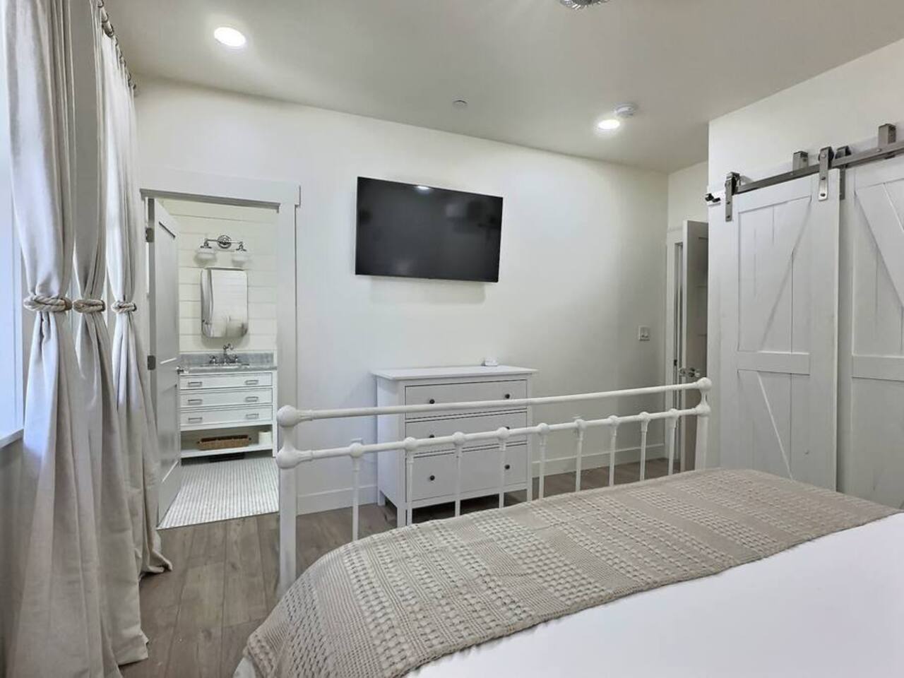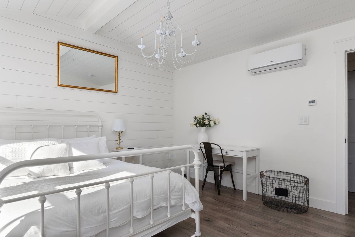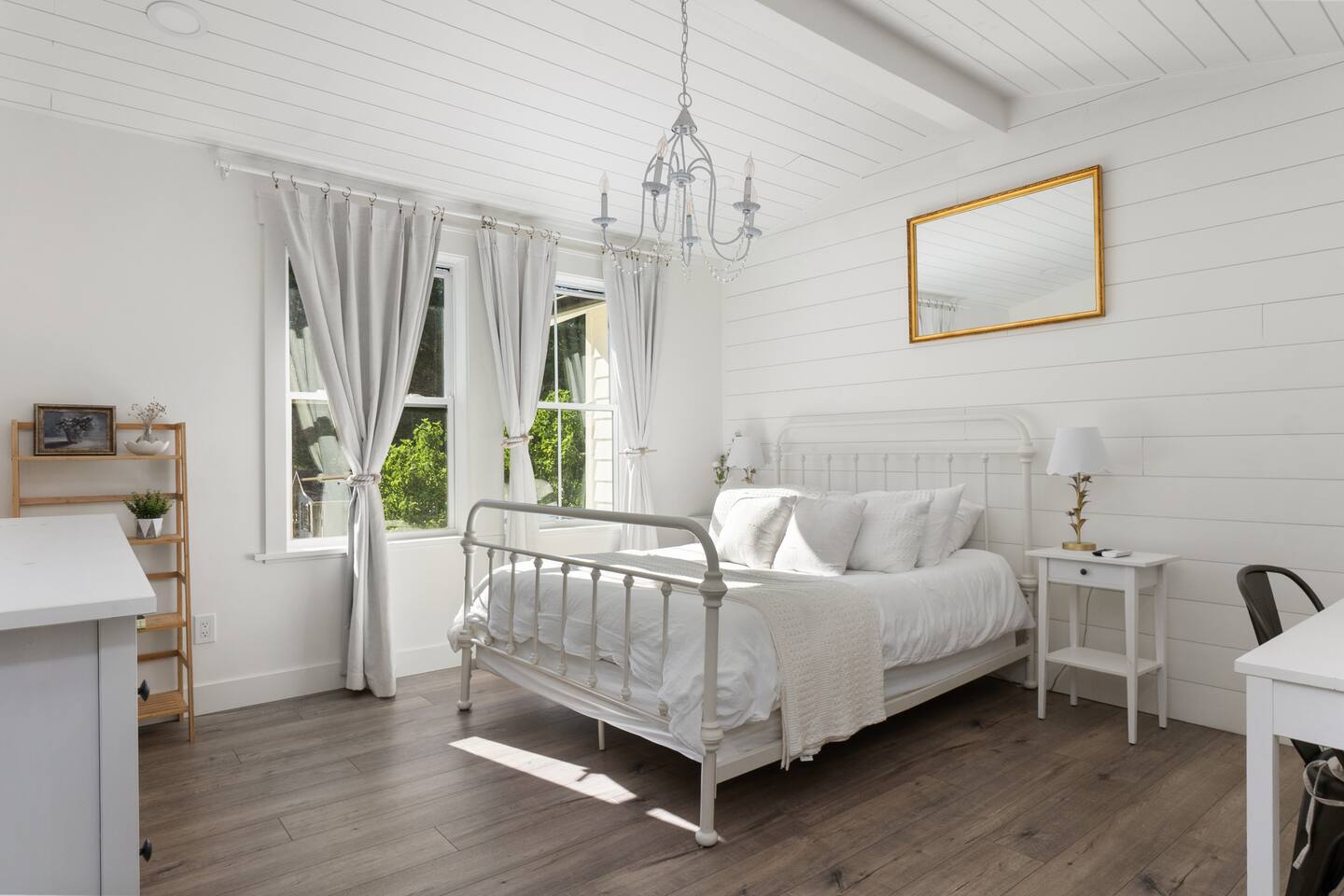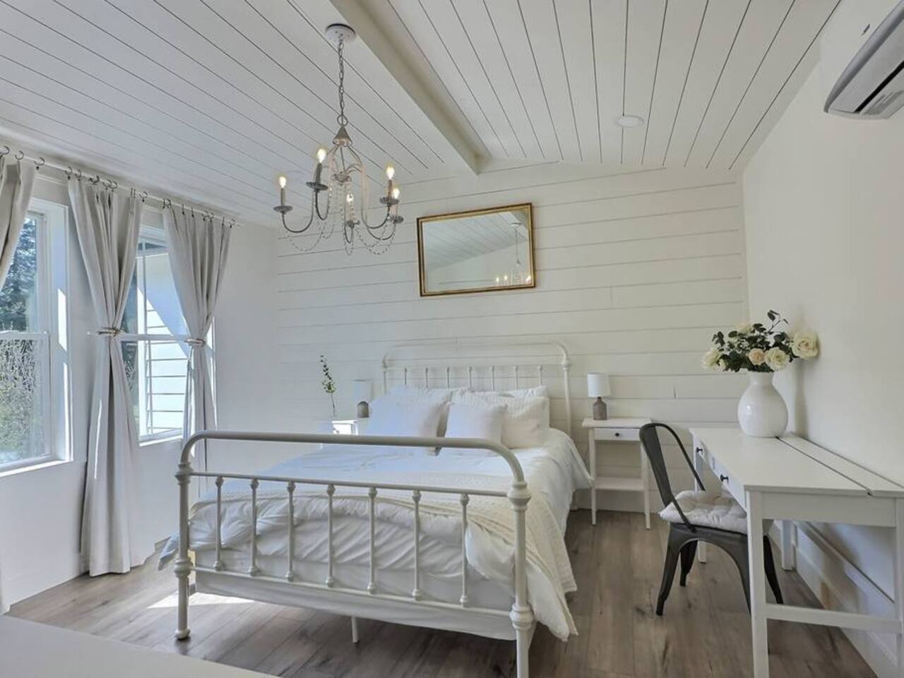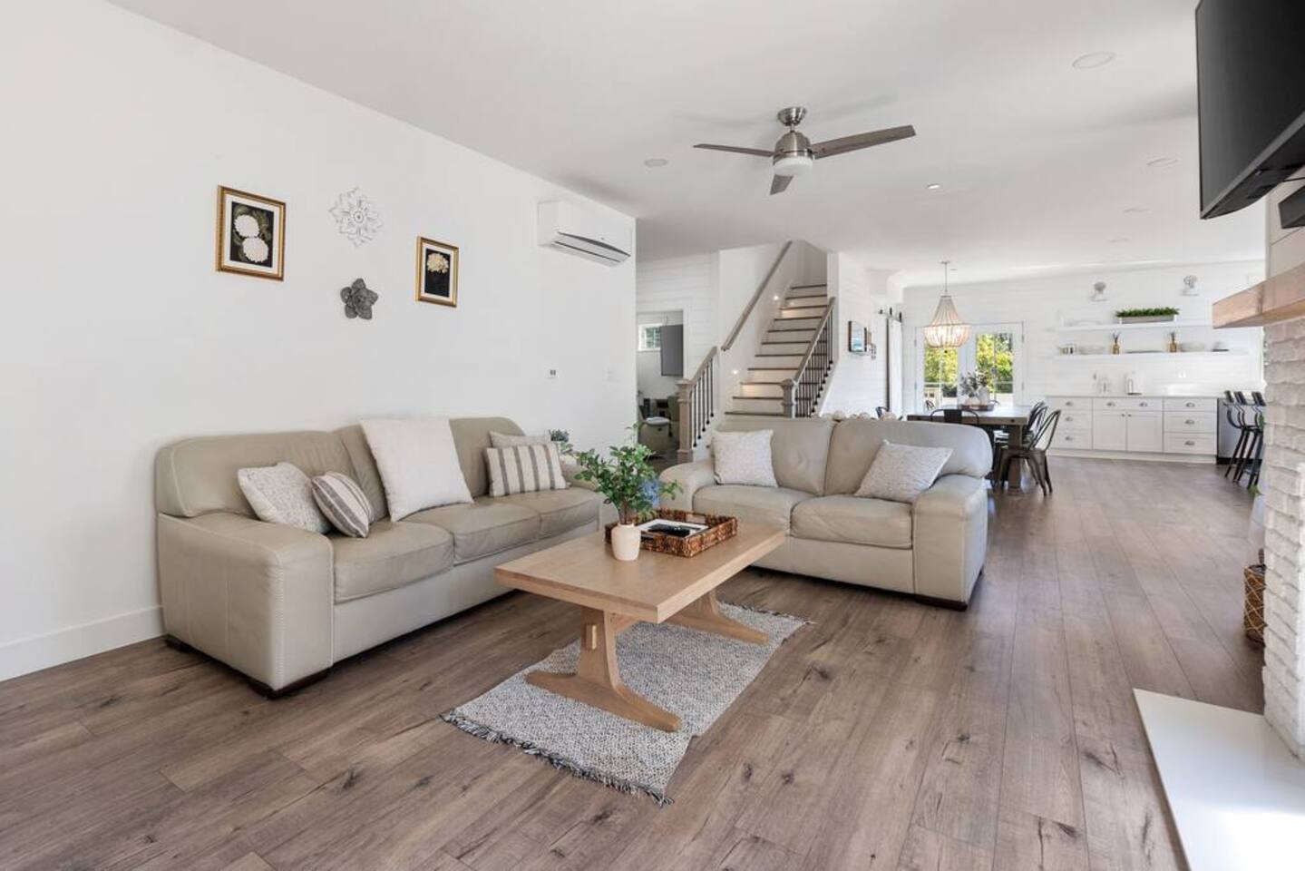 Welcome to Serenity at Shoreline, your invitation to gather, restore, and experience a slower rhythm—surrounded by beauty, comfort, and just the right touch of grace. Tucked in a quiet Shoreline neighborhood just north of Seattle, this modern white farmhouse was thoughtfully designed to hold both joy and stillness in equal measure. Driftwood tones, vintage touches, and sunlit spaces come together to create a stay that feels warm, grounded, and unforgettable. From shared meals around the oversized dining table to slow mornings with coffee in the garden, every inch of this home encourages you to soften, settle in, and stay awhile. Just blocks from the Shoreline light rail station, guests enjoy effortless access to both Seattle and Lynnwood, as well as quick connections to I-5 for convenient regional travel. At the heart of the home, you’ll find an open-concept living space with plush seating and a double-sided fireplace, connecting seamlessly to the chef’s kitchen. Outfitted with a six-burner range, island seating, and all the small appliances you might need, the kitchen is perfectly equipped for slow breakfasts, shared dinners, and everything in between. Just around the corner, a cozy theater room invites you to unwind with a favorite film or settle in for a movie night after a day of adventure. All common living spaces are located on the main floor—with the exception of the laundry room, which is tucked away for convenience. The home features five thoughtfully designed bedrooms and a third-floor crow’s nest den—each with its own character and charm. Whether you're hosting a large gathering, retreating with a smaller group, or simply seeking a quiet escape, there’s space to rest and reconnect in every corner. ________________________________________ Where You’ll Sleep 🌿 The Wisteria Suite — Main Floor, King Bed + En-Suite Bath This restful suite feels like a deep exhale—layered in muted light, gentle textures, and a quiet kind of elegance. Located on the main floor, it features a plush king bed, a private en-suite bathroom, and calming views of the cascading wisteria vines just beyond its windows. 🌲 The Driftwood Suite — Upper Floor, King Bed + En-Suite Bath A sanctuary in the sky. With vaulted shiplap ceilings and sun-drenched interiors, this upstairs suite offers both space and stillness. The five-piece en-suite bath features a decadent pedestal soaking tub, and a large TV makes it the perfect space for unwinding in comfort. 🕊 The Shoreline Room — Upper Floor, Queen Bed + Shared Bath Tranquil, simple, and serene, this queen bedroom is located near the shared hallway bath. Designed with early morning light and soft-toned stillness in mind, it’s a peaceful escape tucked just across from the Driftwood Suite. 🌙 The Sea Star Bunkroom — Upper Floor, 2 Twin-Over-Twin Bunks + Shared Bath Playful and cozy, this light-hearted space features two twin-over-twin bunk beds and plenty of charm. It’s ideal for cousins, siblings, or anyone young at heart. 🌸 The Hydrangea Room — Upper Floor, Queen Bed + En-Suite Bath Tucked toward the back of the home, this light-filled queen suite offers privacy and calm. It includes a private en-suite bathroom and a soft, muted palette. A TV makes it a perfect place to retreat and unwind. 🪶 The Lookout — Third Floor, Vaulted Den Perched at the very top of the house, this crow’s nest den is wrapped in treetop views. With vaulted ceilings and natural light, it’s perfect for journaling, quiet work, or creative solitude—your personal perch above it all. ________________________________________ Step outside into a fully fenced backyard where nature wraps around you like a gentle whisper. Twinkling lights twist above the outdoor dining space, hydrangeas bloom in blues and blush, and a soft green lawn invites you to slip off your shoes and feel the earth beneath your feet The home is equipped with everything you need for a seamless and comfortable stay: high-speed Wi-Fi, smart TVs, a full laundry room, luxurious linens, plush towels, and a curated starter supply of soaps and household essentials. Every space—every corner—has been arranged with care, wrapped in warmth, and built for ease. Reminiscent of classic townhomes and side-by-side estates, Serenity at Shoreline shares one wall with a neighboring private residence. Each home is fully self-contained, with its own private entrance, living quarters, yard, and parking—ensuring your stay feels peaceful, independent, and uninterrupted “Come as you are. Leave a little lighter.” This isn’t just a place to stay—it’s a gentle invitation to slow down, breathe deeper, and find a softer way of being, right here in the quiet heart of Shoreline.