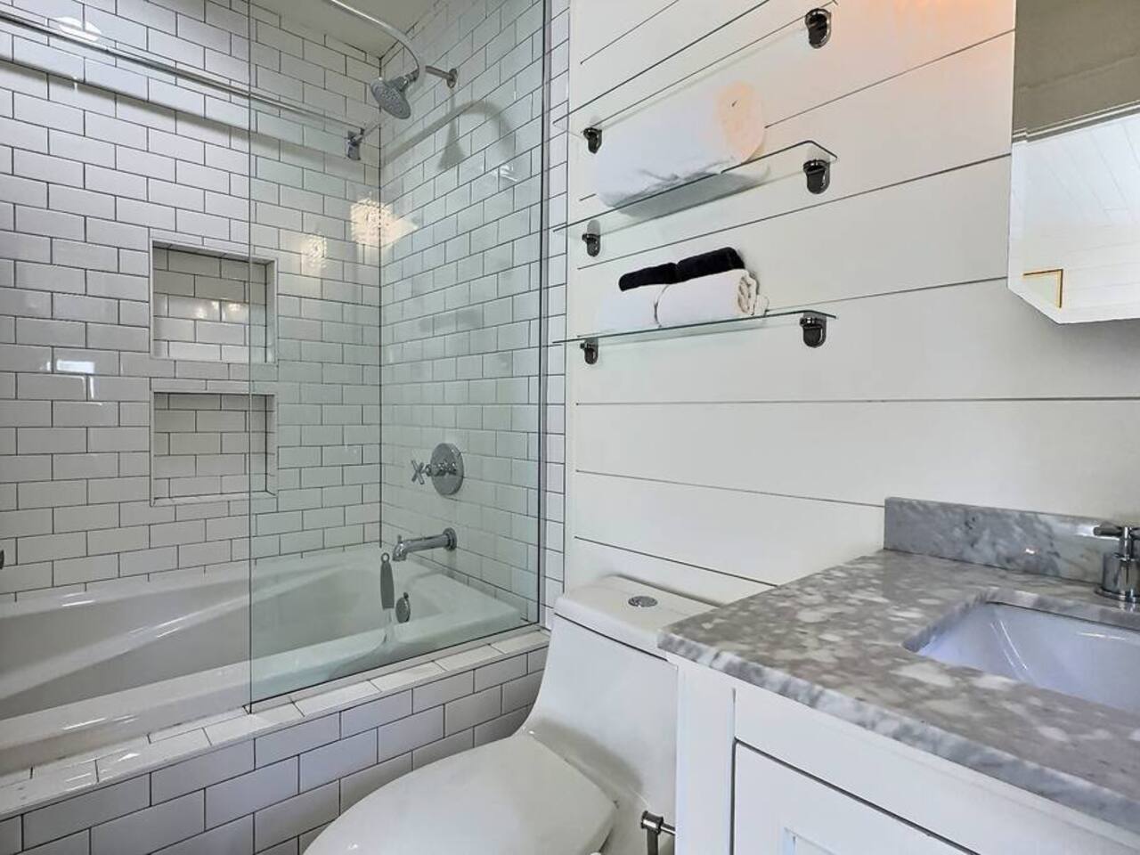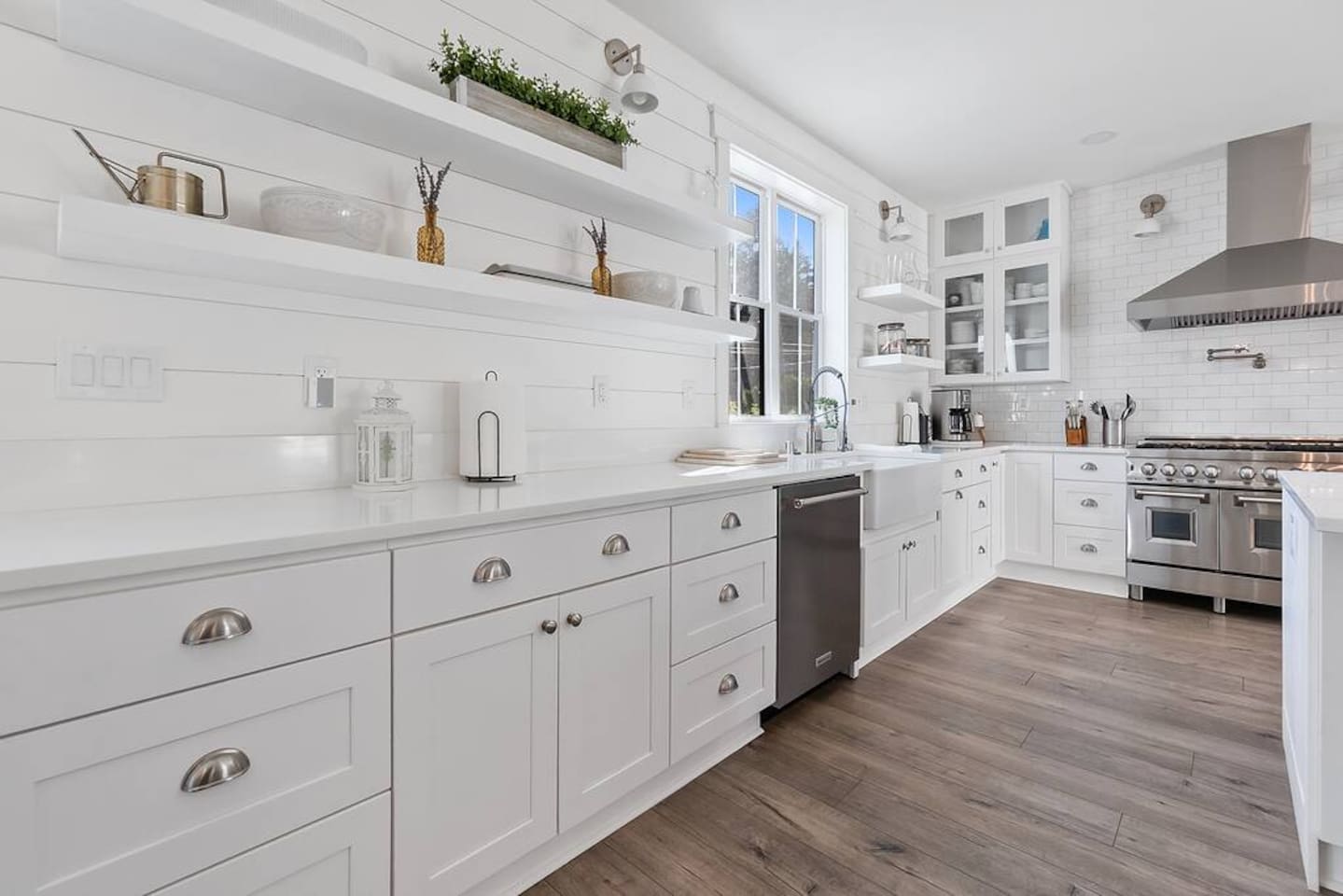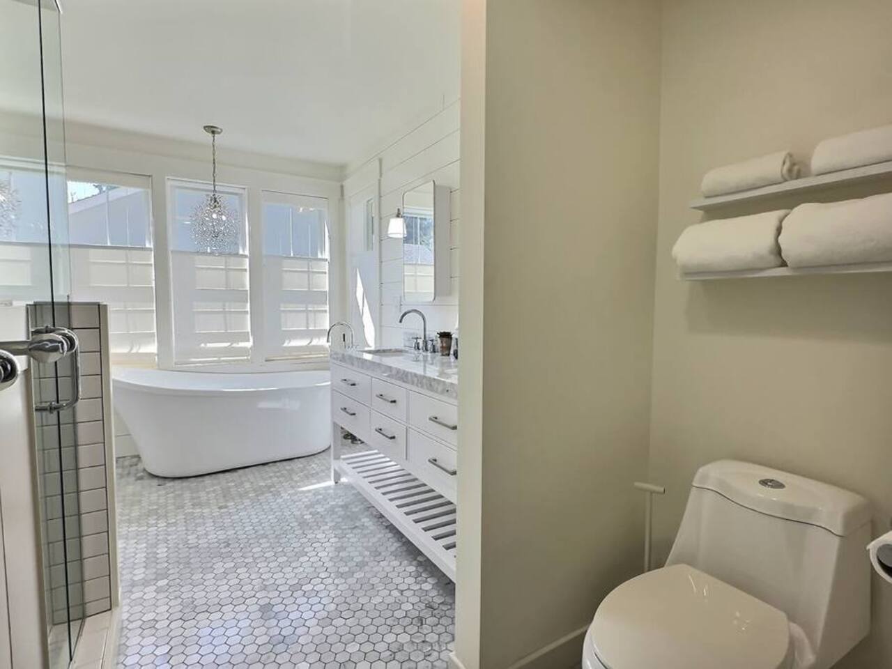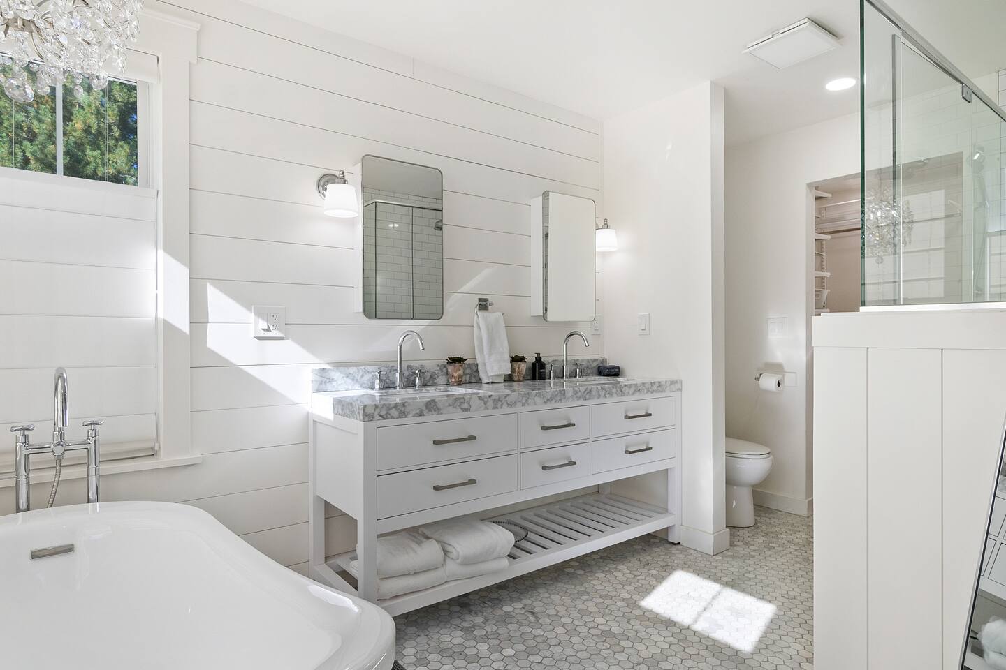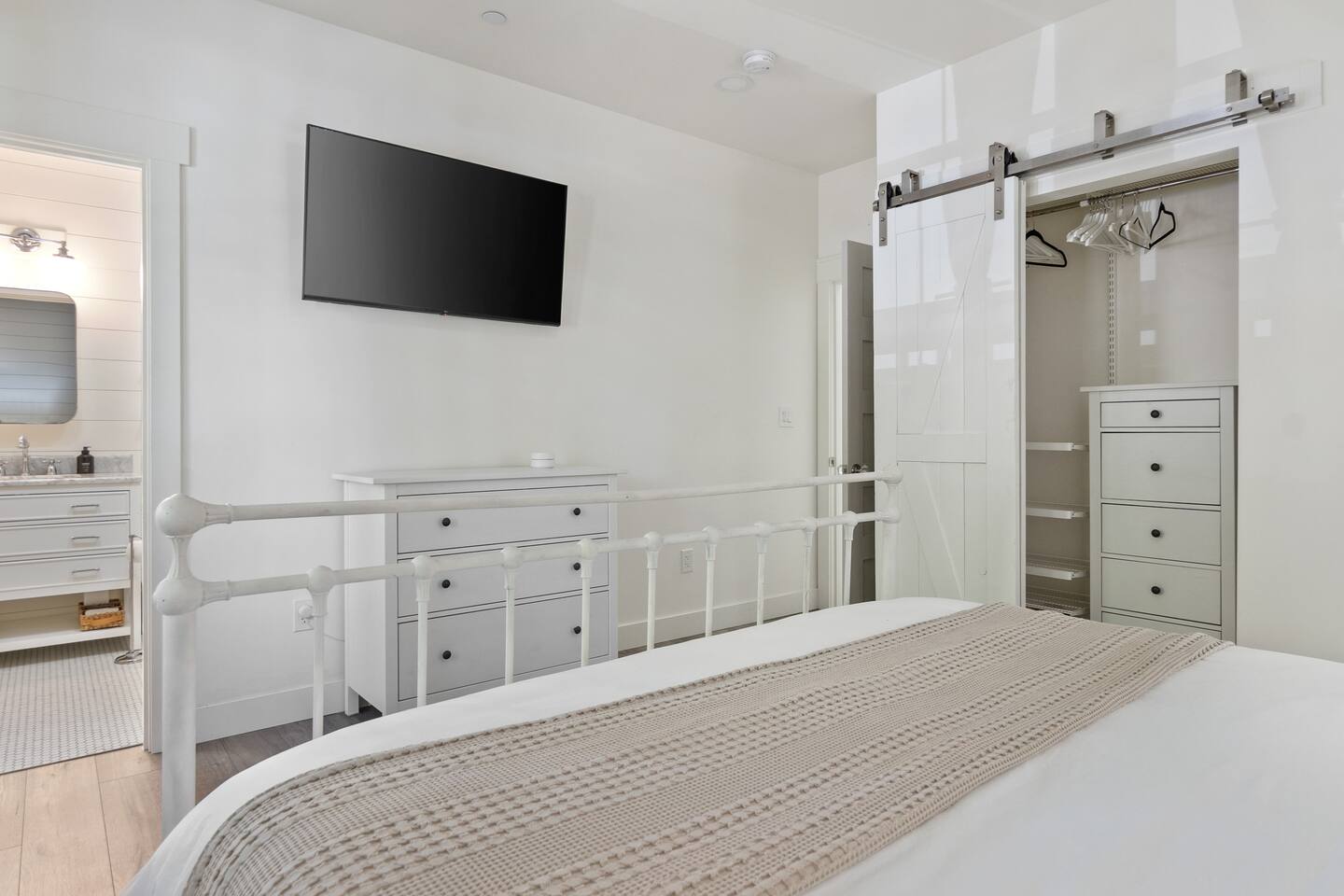 Welcome to Serenity at Shoreline, your invitation to gather, restore, and experience a slower rhythm—surrounded by beauty, comfort, and just the right touch of grace. Tucked in a quiet Shoreline neighborhood just north of Seattle, this modern white farmhouse was thoughtfully designed to hold both joy and stillness in equal measure. Driftwood tones, vintage touches, and sunlit spaces come together to create a stay that feels warm, grounded, and unforgettable. From shared meals around the oversized dining table to slow mornings with coffee in the garden, every inch of this home encourages you to soften, settle in, and stay awhile. Just blocks from the Shoreline light rail station, guests enjoy effortless access to both Seattle and Lynnwood, as well as quick connections to I-5 for convenient regional travel. At the heart of the home, you’ll find an open-concept living space with plush seating and a double-sided fireplace, connecting seamlessly to the chef’s kitchen. Outfitted with a six-burner range, island seating, and all the small appliances you might need, the kitchen is perfectly equipped for slow breakfasts, shared dinners, and everything in between. Just around the corner, a cozy theater room invites you to unwind with a favorite film or settle in for a movie night after a day of adventure. All common living spaces are located on the main floor—with the exception of the laundry room, which is tucked away for convenience. The home features five thoughtfully designed bedrooms and a third-floor crow’s nest den—each with its own character and charm. Whether you're hosting a large gathering, retreating with a smaller group, or simply seeking a quiet escape, there’s space to rest and reconnect in every corner. ________________________________________ Where You’ll Sleep 🌿 The Wisteria Suite — Main Floor, King Bed + En-Suite Bath This restful suite feels like a deep exhale—layered in muted light, gentle textures, and a quiet kind of elegance. Located on the main floor, it features a plush king bed, a private en-suite bathroom, and calming views of the cascading wisteria vines just beyond its windows. 🌲 The Driftwood Suite — Upper Floor, King Bed + En-Suite Bath A sanctuary in the sky. With vaulted shiplap ceilings and sun-drenched interiors, this upstairs suite offers both space and stillness. The five-piece en-suite bath features a decadent pedestal soaking tub, and a large TV makes it the perfect space for unwinding in comfort. 🕊 The Shoreline Room — Upper Floor, Queen Bed + Shared Bath Tranquil, simple, and serene, this queen bedroom is located near the shared hallway bath. Designed with early morning light and soft-toned stillness in mind, it’s a peaceful escape tucked just across from the Driftwood Suite. 🌙 The Sea Star Bunkroom — Upper Floor, 2 Twin-Over-Twin Bunks + Shared Bath Playful and cozy, this light-hearted space features two twin-over-twin bunk beds and plenty of charm. It’s ideal for cousins, siblings, or anyone young at heart. 🌸 The Hydrangea Room — Upper Floor, Queen Bed + En-Suite Bath Tucked toward the back of the home, this light-filled queen suite offers privacy and calm. It includes a private en-suite bathroom and a soft, muted palette. A TV makes it a perfect place to retreat and unwind. 🪶 The Lookout — Third Floor, Vaulted Den Perched at the very top of the house, this crow’s nest den is wrapped in treetop views. With vaulted ceilings and natural light, it’s perfect for journaling, quiet work, or creative solitude—your personal perch above it all. ________________________________________ Step outside into a fully fenced backyard where nature wraps around you like a gentle whisper. Twinkling lights twist above the outdoor dining space, hydrangeas bloom in blues and blush, and a soft green lawn invites you to slip off your shoes and feel the earth beneath your feet The home is equipped with everything you need for a seamless and comfortable stay: high-speed Wi-Fi, smart TVs, a full laundry room, luxurious linens, plush towels, and a curated starter supply of soaps and household essentials. Every space—every corner—has been arranged with care, wrapped in warmth, and built for ease. Reminiscent of classic townhomes and side-by-side estates, Serenity at Shoreline shares one wall with a neighboring private residence. Each home is fully self-contained, with its own private entrance, living quarters, yard, and parking—ensuring your stay feels peaceful, independent, and uninterrupted “Come as you are. Leave a little lighter.” This isn’t just a place to stay—it’s a gentle invitation to slow down, breathe deeper, and find a softer way of being, right here in the quiet heart of Shoreline.