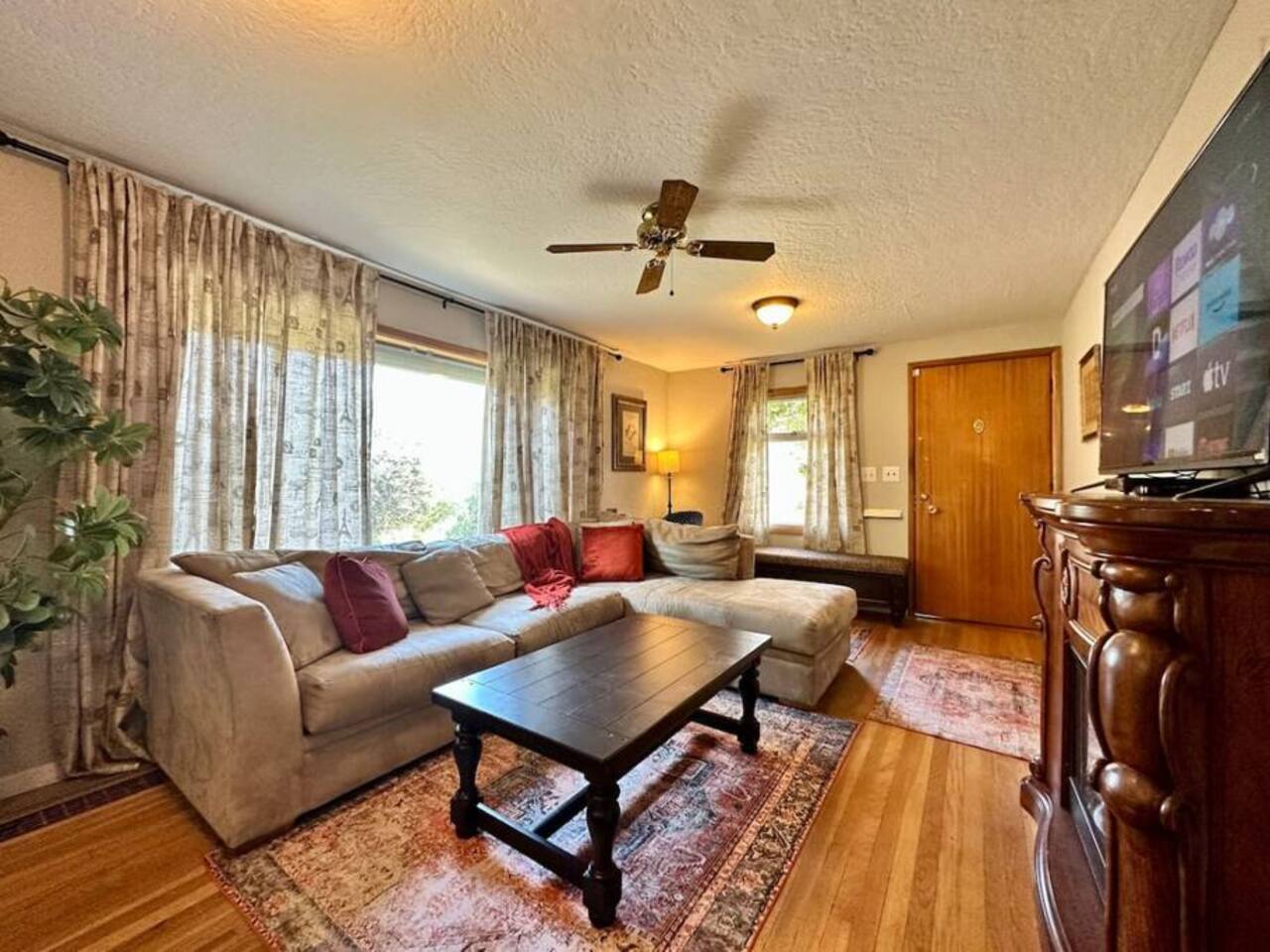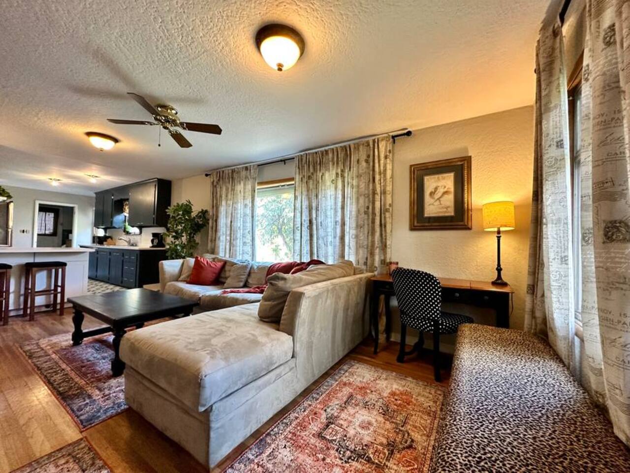 Welcome to ๐๐ญ๐๐ซ๐ฅ๐ข๐ ๐ก๐ญ ๐๐ฎ๐ง๐ ๐๐ฅ๐จ๐ฐ, a cozy and character-filled 3-bedroom home in Seattleโs vibrant South Park neighborhoodโjust minutes from downtown, stadiums, and Boeing Field. Perfect for families, small groups, or business travelers, this stylish Seattle bungalow comfortably sleeps up to 6 guests and offers a unique blend of charm, comfort, and convenience. Step inside and enjoy a warm, eclectic space designed for relaxing and reconnecting. The open-concept living, dining, and kitchen area makes it easy to gather, whether you're cooking a meal, streaming your favorite shows, or unwinding after a day exploring Seattle. The living room features a plush sectional, electric fireplace, and Smart TVโideal for cozy nights in. The fully equipped kitchen includes a full-size refrigerator, electric stove, stainless steel hood, and everything you need for home-cooked meals. A dining nook for four and breakfast bar for two make mealtime easy and flexible. ๐๐ก๐ฒ ๐ ๐ฎ๐๐ฌ๐ญ๐ฌ ๐ฅ๐จ๐ฏ๐ ๐ฌ๐ญ๐๐ฒ๐ข๐ง๐ ๐ก๐๐ซ๐: โข Pet-friendly home โ bring your furry companions (see house rules) โข Fast Wi-Fi โ great for remote work or streaming โข Smart TV with Netflix & HBO GO โข Comfortable beds with soft, high-quality linens โข Washer and dryer in-unit โข Portable A/C for warm summer days โข Private outdoor dining area for relaxed evenings ๐๐ฅ๐๐๐ฉ๐ข๐ง๐ ๐๐ซ๐ซ๐๐ง๐ ๐๐ฆ๐๐ง๐ญ๐ฌ (๐๐ฅ๐๐๐ฉ๐ฌ 6): โข Celestial Garden Room โ King bed โข Enchanted Garden Room โ Queen bed โข Black Rose Room โ Queen bed ๐๐ซ๐ข๐ฆ๐ ๐๐๐๐ญ๐ญ๐ฅ๐ ๐๐จ๐๐๐ญ๐ข๐จ๐ง: Located in South Park, one of Seattleโs most up-and-coming neighborhoods, youโre just minutes from downtown Seattle, SODO, stadiums, and major attractions. Public transportation is easily accessible, with nearby bus stops and a short drive to the light rail - making it simple to explore the city without a car. Whether you're visiting for a weekend getaway, business trip, or extended stay, Starlight Bungalow offers a peaceful home base with easy access to everything Seattle has to offer.