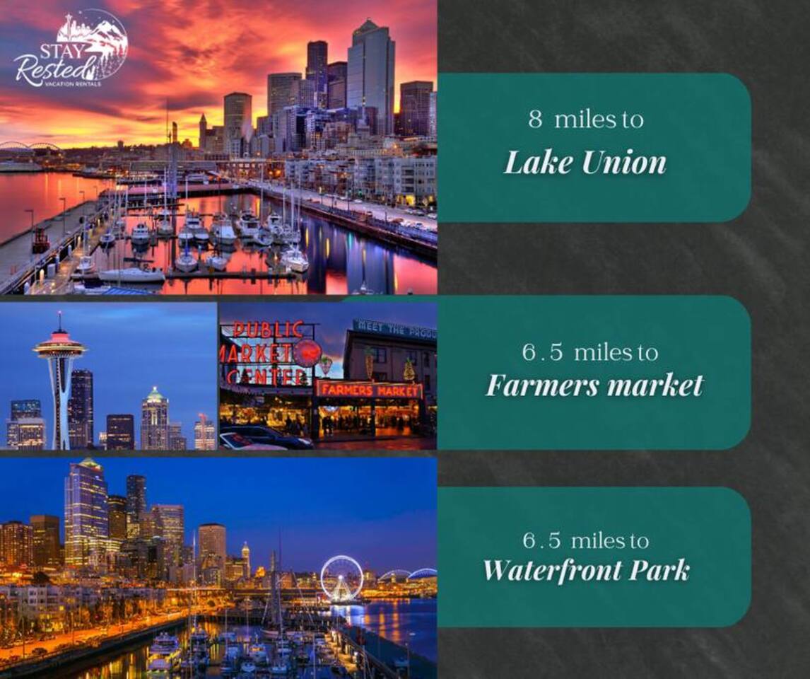๐๐จ๐๐๐ญ๐ข๐จ๐ง & ๐๐๐๐ซ๐๐ฒ ๐๐ญ๐ญ๐ซ๐๐๐ญ๐ข๐จ๐ง๐ฌ This home is conveniently located in Seattle with easy access to major landmarks, attractions, and transport hubs. ๐๐๐๐ญ๐ญ๐ฅ๐โ๐๐๐๐จ๐ฆ๐ ๐๐ง๐ญ๐๐ซ๐ง๐๐ญ๐ข๐จ๐ง๐๐ฅ ๐๐ข๐ซ๐ฉ๐จ๐ซ๐ญ is approximately a 15-minute drive away, making travel simple and convenient. For sports fans and event-goers, Lumen Field is about 5.6 miles away, while T-Mobile Park is also nearby for baseball games and events. Some of Seattleโs most iconic spots are just a short drive away. The Space Needle is approximately 7.5 miles from the home, along with downtown Seattle where youโll find shopping, dining, and waterfront attractions. For those who enjoy the outdoors, Seward Park is around 5 miles away, offering scenic lake views, walking trails, and green spaces. The nearby Georgetown neighborhood is also worth exploring for its local cafes, restaurants, and creative atmosphere. The location offers a great balance of accessibility and comfort, placing you close to the cityโs highlights while staying in a quieter residential area.